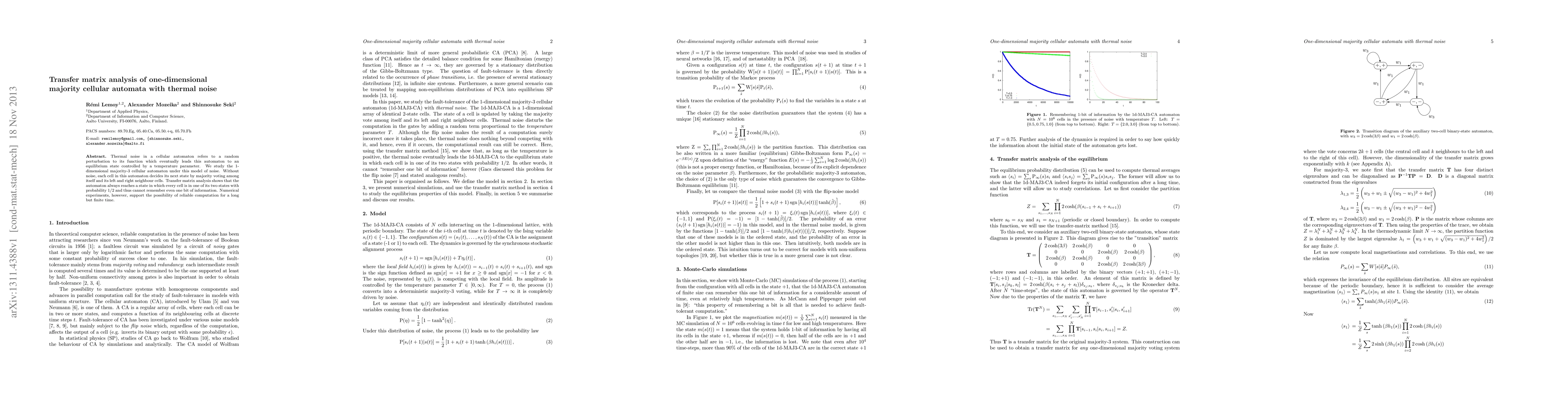 Thermal noise in a cellular automaton refers to a random perturbation to its function which eventually leads this automaton to an equilibrium state controlled by a temperature parameter. We study the 1-dimensional majority-3 cellular automaton under this model of noise. Without noise, each cell in this automaton decides its next state by majority voting among itself and its left and right neighbour cells. Transfer matrix analysis shows that the automaton always reaches a state in which every cell is in one of its two states with probability 1/2 and thus cannot remember even one bit of information. Numerical experiments, however, support the possibility of reliable computation for a long but finite time.