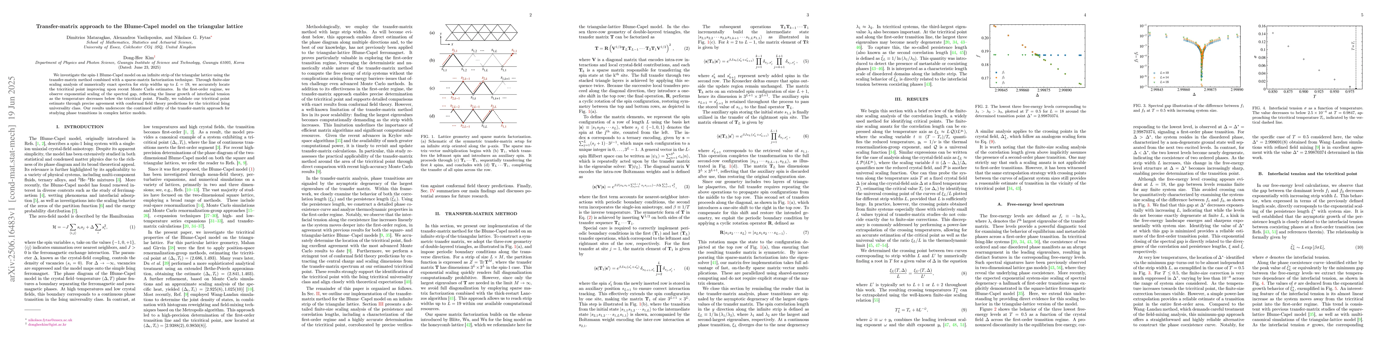 We investigate the spin-$1$ Blume-Capel model on an infinite strip of the triangular lattice using the transfer-matrix method combined with a sparse-matrix factorization technique. Through finite-size scaling analysis of numerically exact spectra for strip widths up to $L = 19$, we accurately locate the tricritical point improving upon recent Monte Carlo estimates. In the first-order regime, we observe exponential scaling of the spectral gap, reflecting the linear growth of interfacial tension as the temperature decreases below the tricritical point. Finally, we validate our tricritical point estimate through precise agreement with conformal field theory predictions for the tricritical Ising universality class. Our results underscore the continued utility of the transfer-matrix approach for studying phase transitions in complex lattice models.