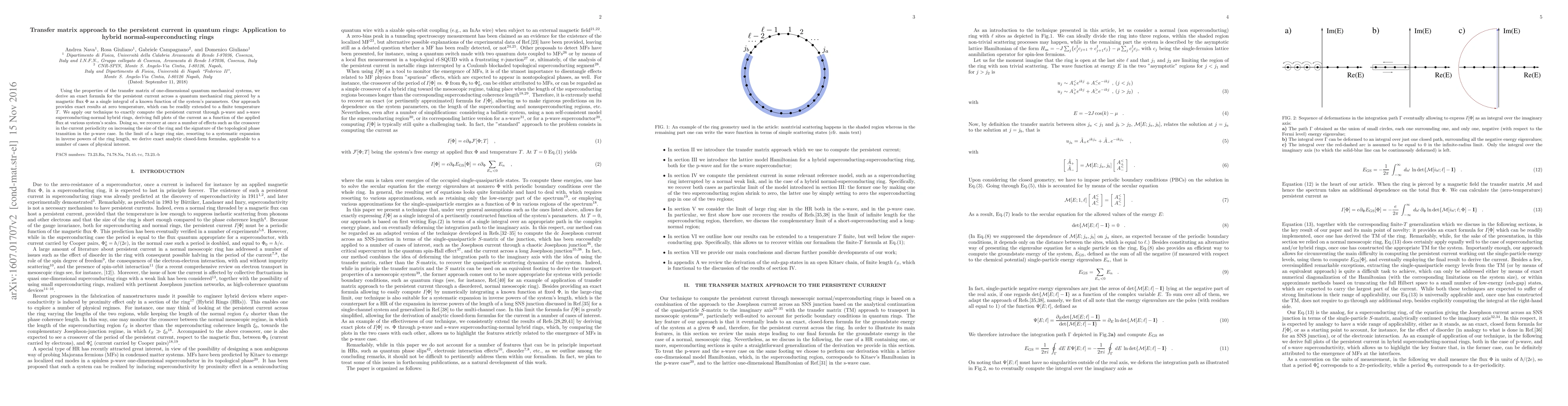 This paper develops a transfer matrix approach to calculate the persistent current in hybrid normal-superconducting rings, providing exact zero-temperature results that extend to low finite temperatures. The method reveals effects such as current periodicity changes and topological phase transitions, with analytic formulas for large rings.