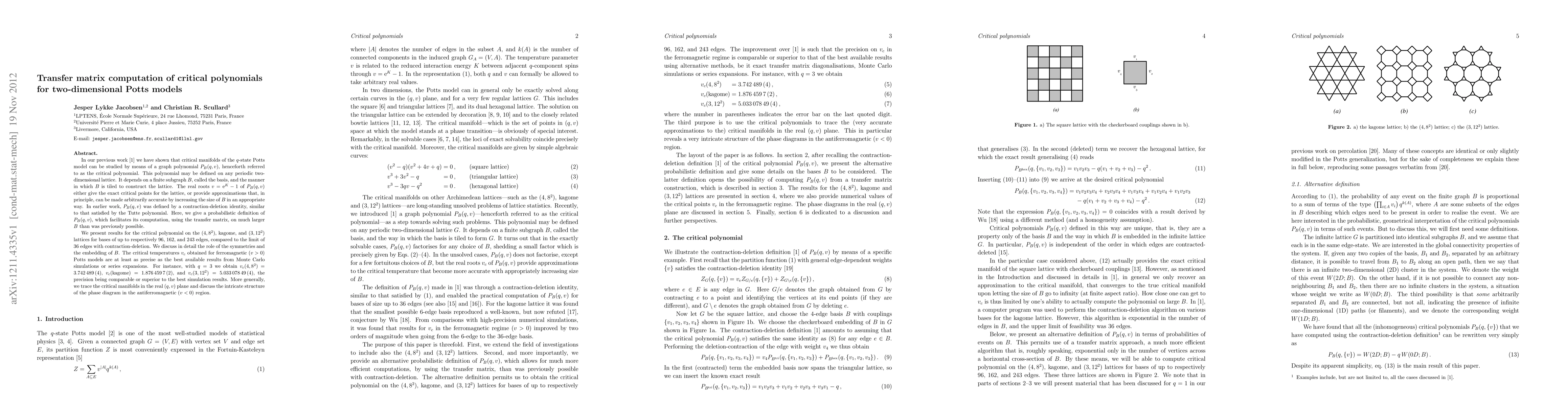 This paper presents a transfer matrix method for computing critical polynomials of the q-state Potts model, achieving results on larger lattices than previous contraction-deletion methods. The method provides precise critical temperatures for ferromagnetic Potts models, matching or exceeding the accuracy of Monte Carlo simulations.