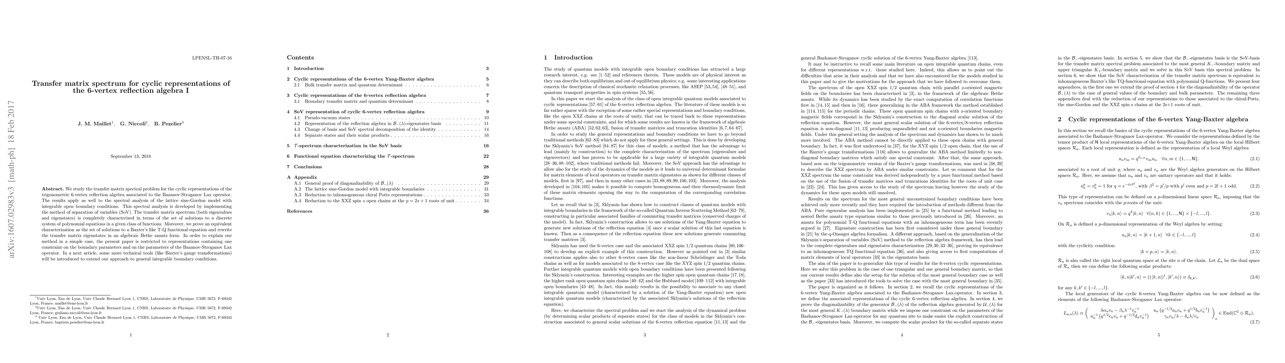 Researchers study the transfer matrix spectrum for cyclic representations of the 6-vertex reflection algebra, providing a new characterization of eigenvalues and states in terms of polynomial equations and Baxter's T-Q functional equation.