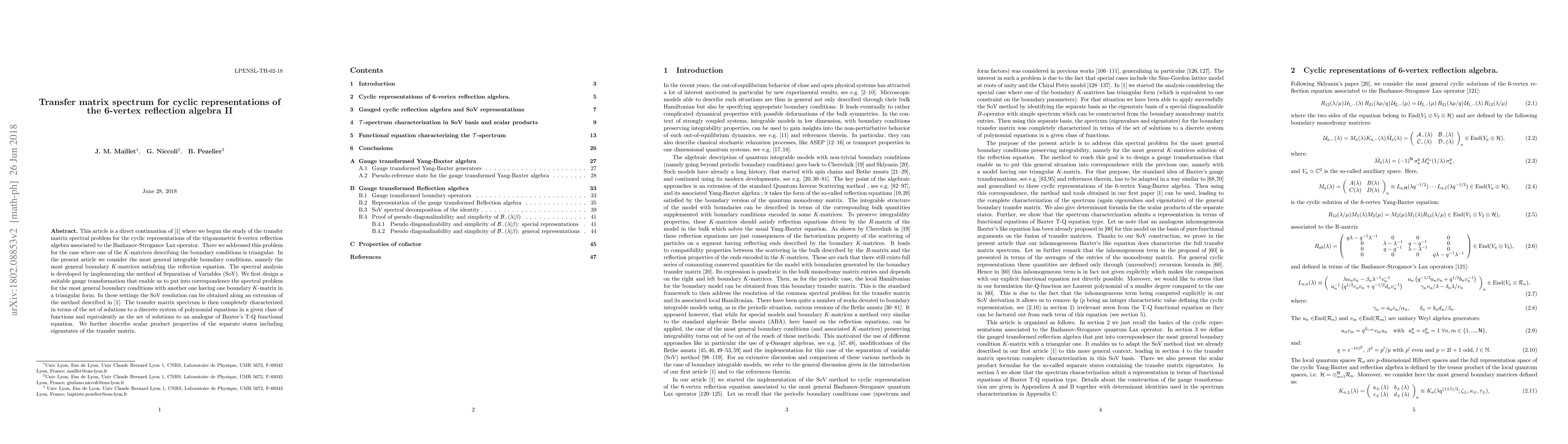 This article is a direct continuation of [1] where we begun the study of the transfer matrix spectral problem for the cyclic representations of the trigonometric 6-vertex reflection algebra associated to the Bazhanov-Stroganov Lax operator. There we addressed this problem for the case where one of the K-matrices describing the boundary conditions is triangular. In the present article we consider the most general integrable boundary conditions, namely the most general boundary K-matrices satisfying the reflection equation. The spectral analysis is developed by implementing the method of Separation of Variables (SoV). We first design a suitable gauge transformation that enable us to put into correspondence the spectral problem for the most general boundary conditions with another one having one boundary K-matrix in a triangular form. In these settings the SoV resolution can be obtained along an extension of the method described in [1]. The transfer matrix spectrum is then completely characterized in terms of the set of solutions to a discrete system of polynomial equations in a given class of functions and equivalently as the set of solutions to an analogue of Baxter's T-Q functional equation. We further describe scalar product properties of the separate states including eigenstates of the transfer matrix.