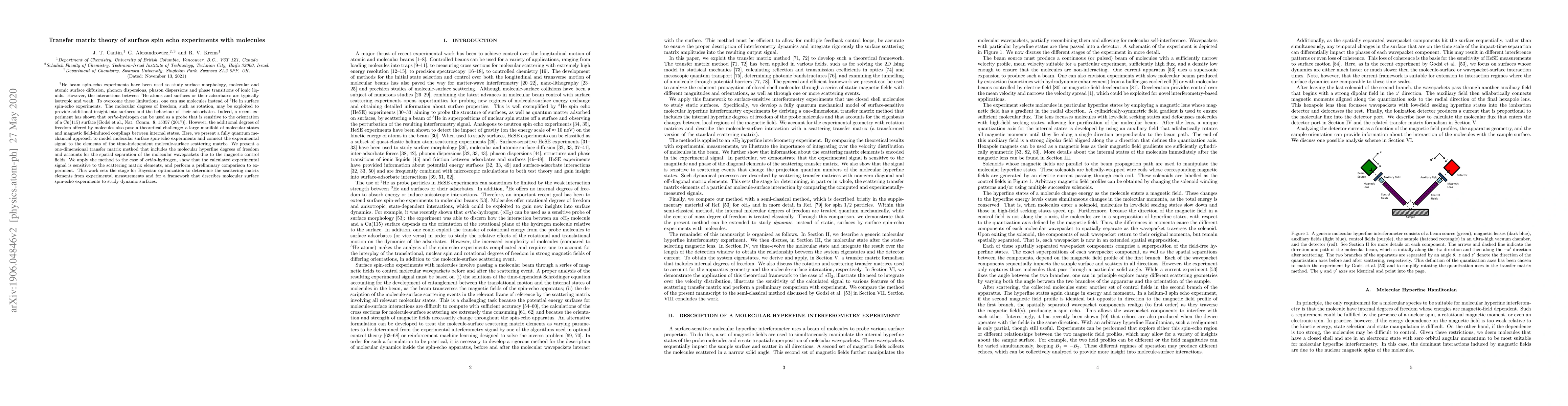 This paper presents a quantum mechanical transfer matrix theory to model molecular surface spin-echo experiments, focusing on the additional degrees of freedom offered by molecules like $\textit{ortho}$-hydrogen. The method connects experimental signals to the molecule-surface scattering matrix, enabling insights into dynamic surfaces and paving the way for Bayesian optimization to determine scattering matrix elements.