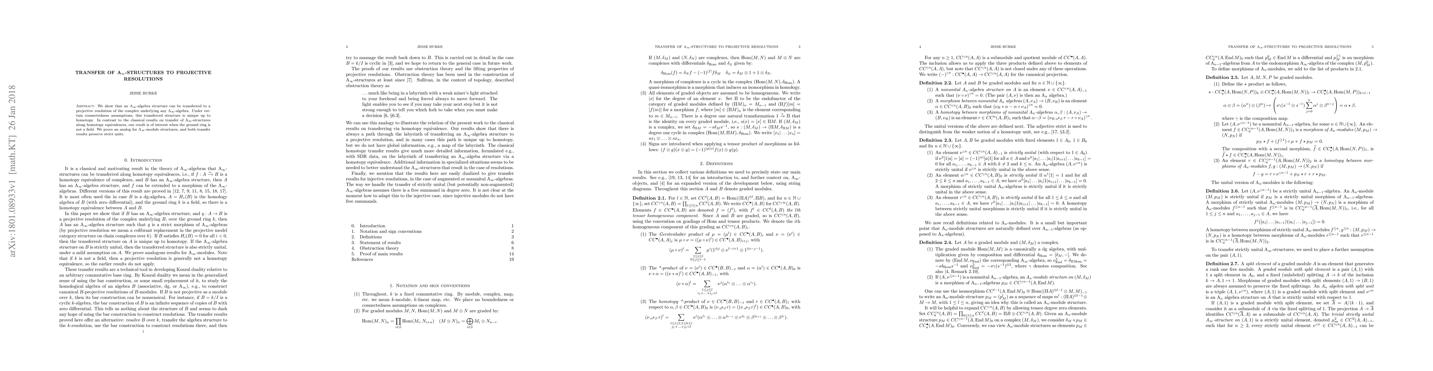 Summary: This paper demonstrates the transfer of A-infinity algebra structures to projective resolutions, proving uniqueness under certain conditions and extending the result to A-infinity module structures, all while preserving strict units, even when the ground ring is not a field.