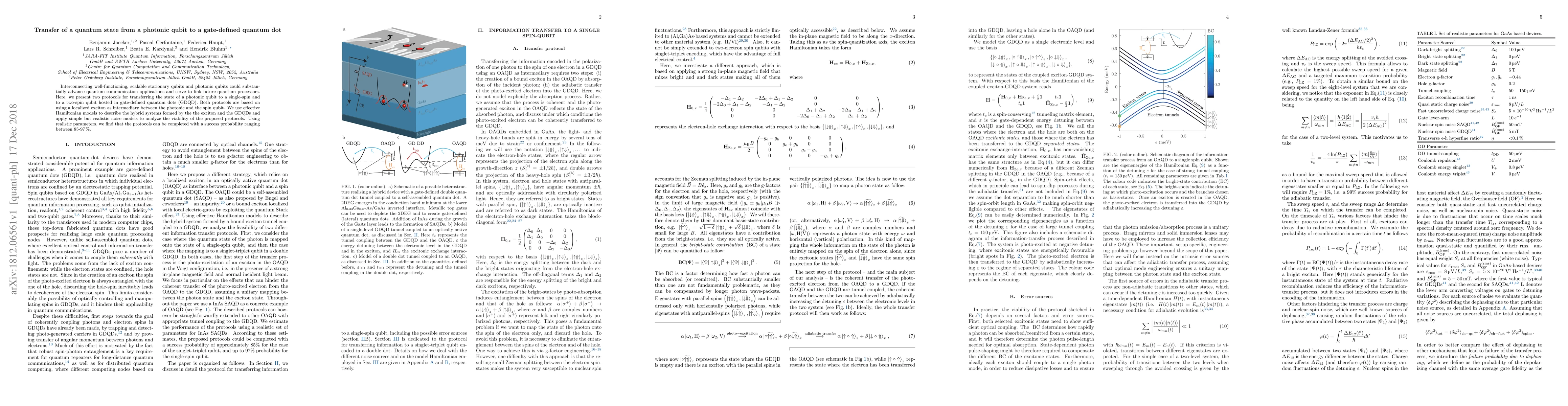 This paper proposes two protocols for transferring a photonic qubit state to single- and two-spin qubits in gate-defined quantum dots using localized excitons as intermediaries. The protocols' viability is analyzed using effective Hamiltonian models and realistic noise models, showing success probabilities between 85-97%.
