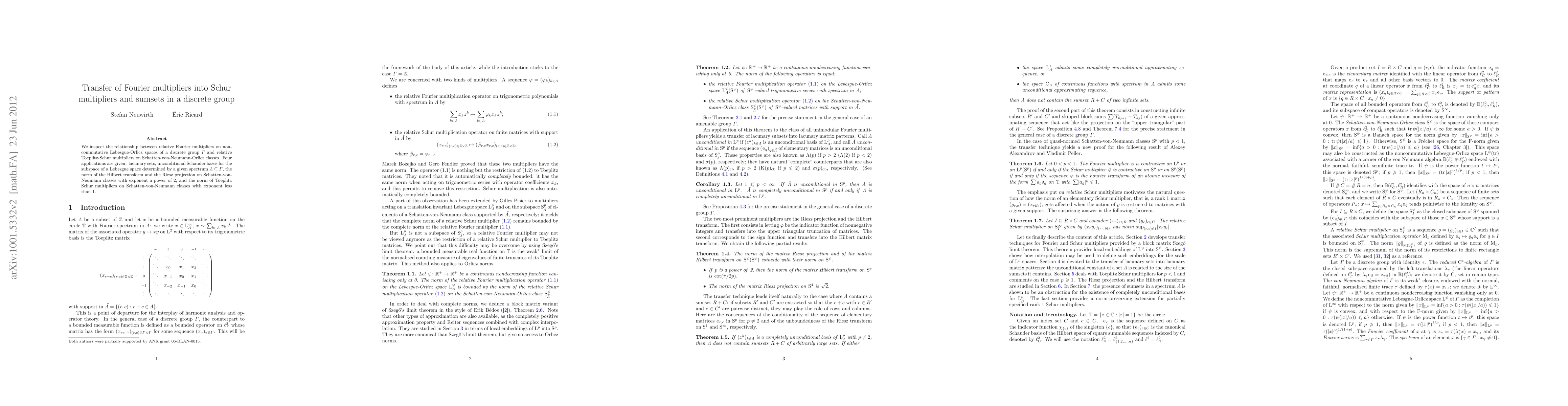 We inspect the relationship between relative Fourier multipliers on noncommutative Lebesgue-Orlicz spaces of a discrete group and relative Toeplitz-Schur multipliers on Schatten-von-Neumann-Orlicz classes. Four applications are given: lacunary sets; unconditional Schauder bases for the subspace of a Lebesgue space determined by a given spectrum, that is, by a subset of the group; the norm of the Hilbert transform and the Riesz projection on Schatten-von-Neumann classes with exponent a power of 2; the norm of Toeplitz Schur multipliers on Schatten-von-Neumann classes with exponent less than 1.