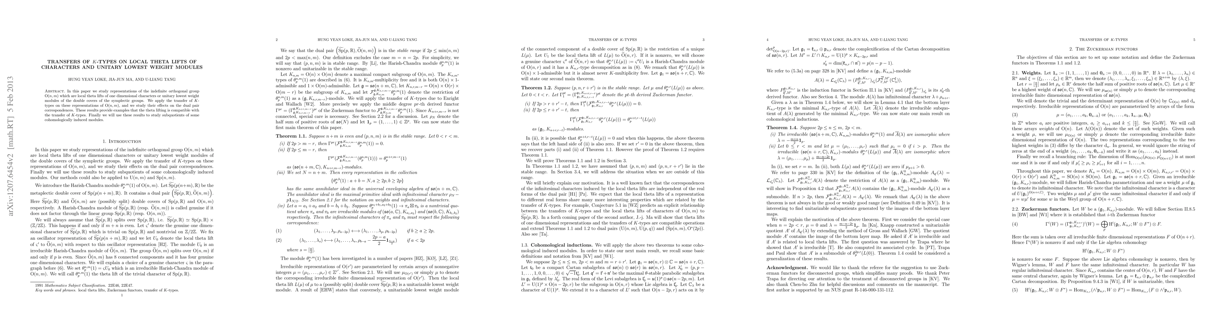 This paper investigates the local theta lifts of representations of the indefinite orthogonal group O(n,m) from characters and unitary lowest weight modules of symplectic groups' double covers. It explores the transfer of K-types on these representations and demonstrates their compatibility with theta lifting, providing insights into subquotients of cohomologically induced modules.