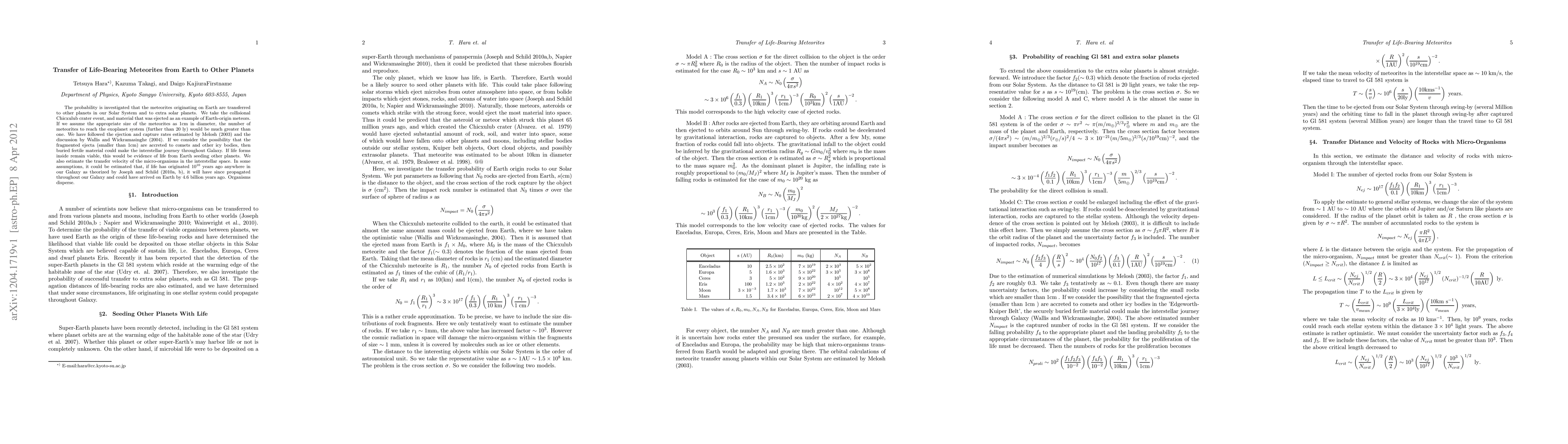This paper investigates the likelihood of Earth-origin meteorites, including micro-organisms, being transferred to other planets within and beyond our Solar System. It suggests that even small fragments could journey through interstellar space, potentially seeding life on other planets if viable.