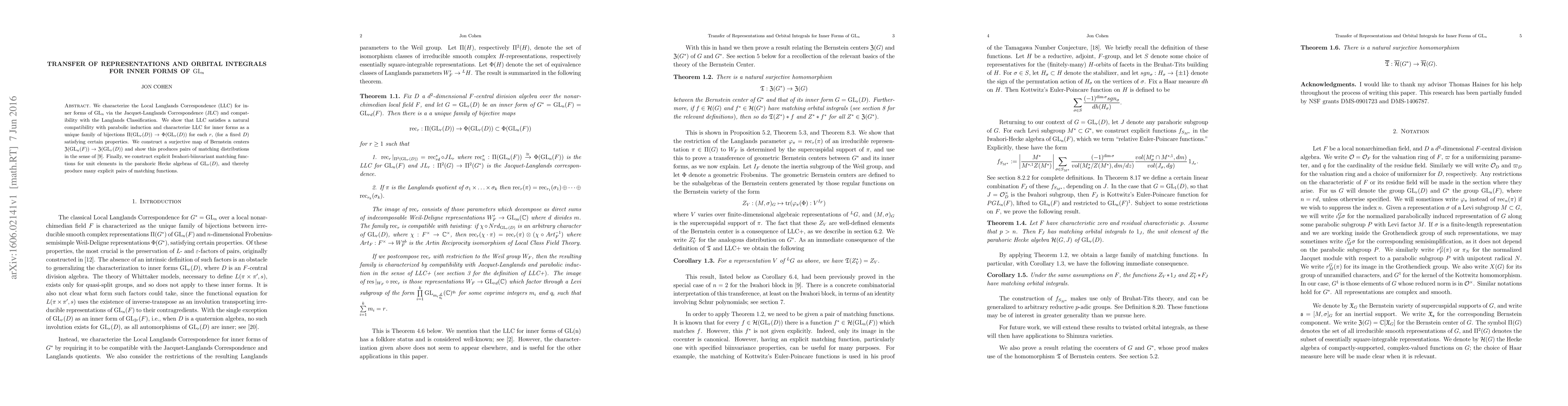 This paper characterizes the Local Langlands Correspondence for inner forms of $GL_n$ using the Jacquet-Langlands Correspondence and establishes its compatibility with parabolic induction. It also constructs explicit Iwahori-biinvariant matching functions for unit elements in the parahoric Hecke algebras, providing many explicit pairs of matching distributions.