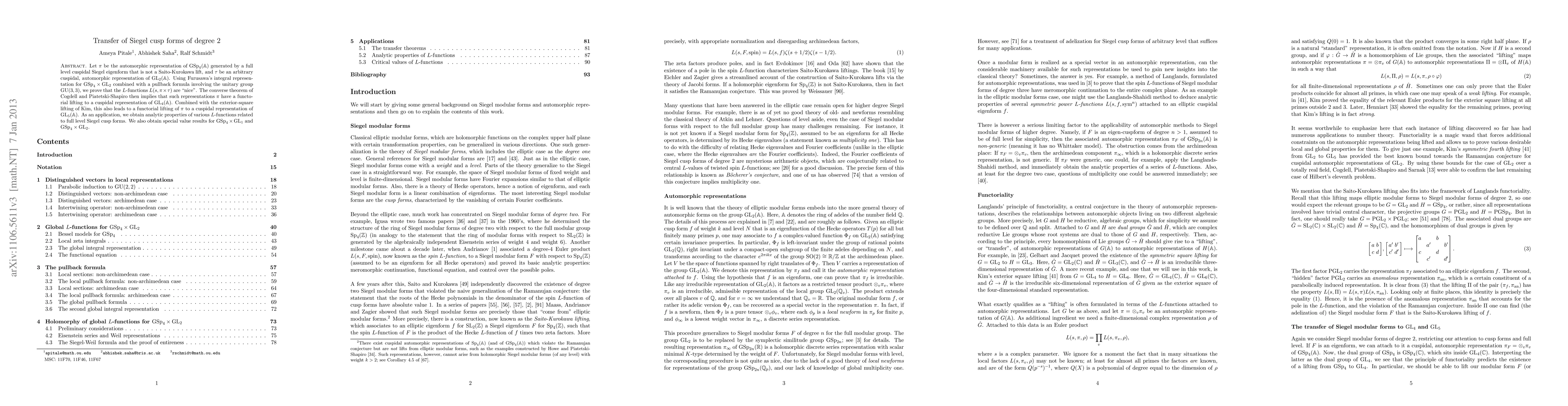 Researchers prove that certain Siegel cusp forms can be functorially lifted to higher-rank groups, leading to new insights into L-functions and special values.