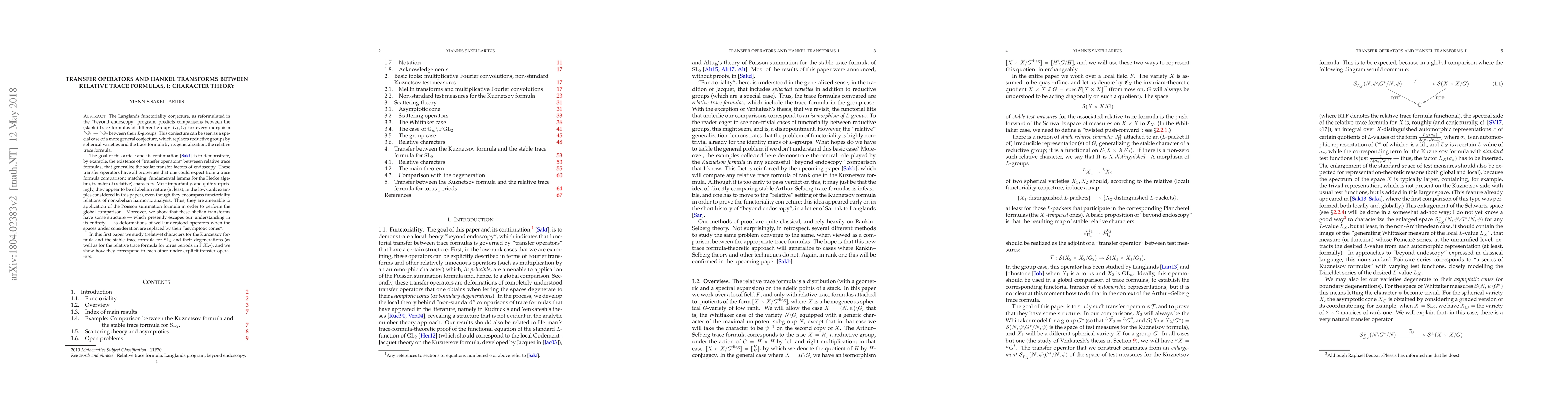 The paper introduces and analyzes transfer operators between relative trace formulas, generalizing endoscopic scalar transfer factors and demonstrating their abelian nature, which facilitates the application of the Poisson summation formula.