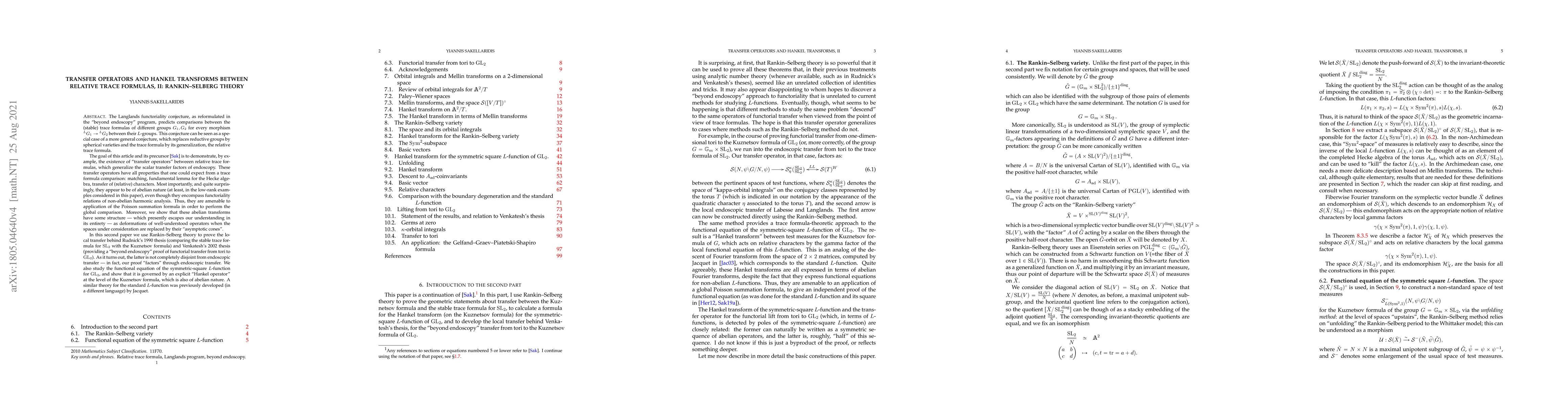 The goal of this article and its precursor is to demonstrate, by example, the existence of "transfer operators" betweeen relative trace formulas, which generalize the scalar transfer factors of endoscopy. These transfer operators have all properties that one could expect from a trace formula comparison: matching, fundamental lemma for the Hecke algebra, transfer of (relative) characters. Most importantly, and quite surprisingly, they appear to be of abelian nature (at least, in the low-rank examples considered in this paper), even though they encompass functoriality relations of non-abelian harmonic analysis. Thus, they are amenable to application of the Poisson summation formula in order to perform the global comparison. Moreover, we show that these abelian transforms have some structure -- which presently escapes our understanding in its entirety -- as deformations of well-understood operators when the spaces under consideration are replaced by their "asymptotic cones". In this second paper we use Rankin-Selberg theory to prove the local transfer behind Rudnick's 1990 thesis (comparing the stable trace formula for $\operatorname{SL}_2$ with the Kuznetsov formula) and Venkatesh's 2002 thesis (providing a "beyond endoscopy" proof of functorial transfer from tori to $\operatorname{GL}_2$). As it turns out, the latter is not completely disjoint from endoscopic transfer -- in fact, our proof "factors" through endoscopic transfer. We also study the functional equation of the symmetric-square $L$-function for $\operatorname{GL}_2$, and show that it is governed by an explicit "Hankel operator" at the level of the Kuznetsov formula, which is also of abelian nature. A similar theory for the standard $L$-function was previously developed (in a different language) by Jacquet.