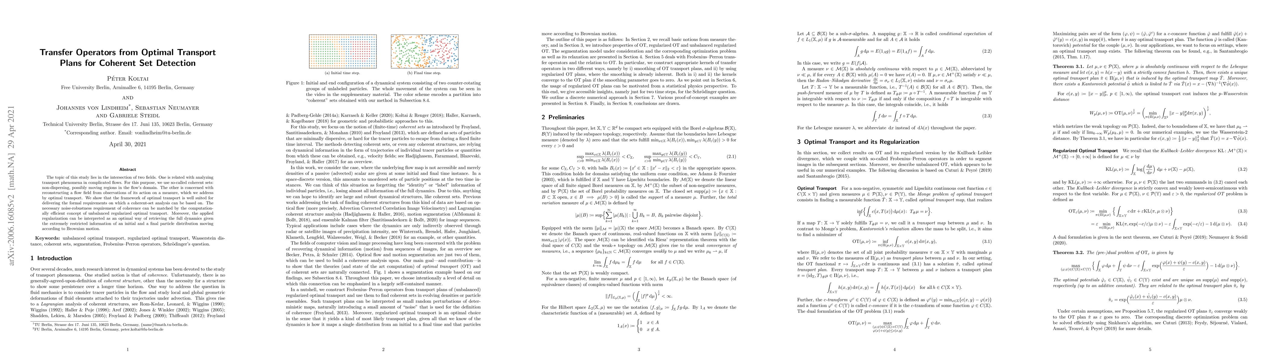 The topic of this study lies in the intersection of two fields. One is related with analyzing transport phenomena in complicated flows.For this purpose, we use so-called coherent sets: non-dispersing, possibly moving regions in the flow's domain. The other is concerned with reconstructing a flow field from observing its action on a measure, which we address by optimal transport. We show that the framework of optimal transport is well suited for delivering the formal requirements on which a coherent-set analysis can be based on. The necessary noise-robustness requirement of coherence can be matched by the computationally efficient concept of unbalanced regularized optimal transport. Moreover, the applied regularization can be interpreted as an optimal way of retrieving the full dynamics given the extremely restricted information of an initial and a final distribution of particles moving according to Brownian motion.