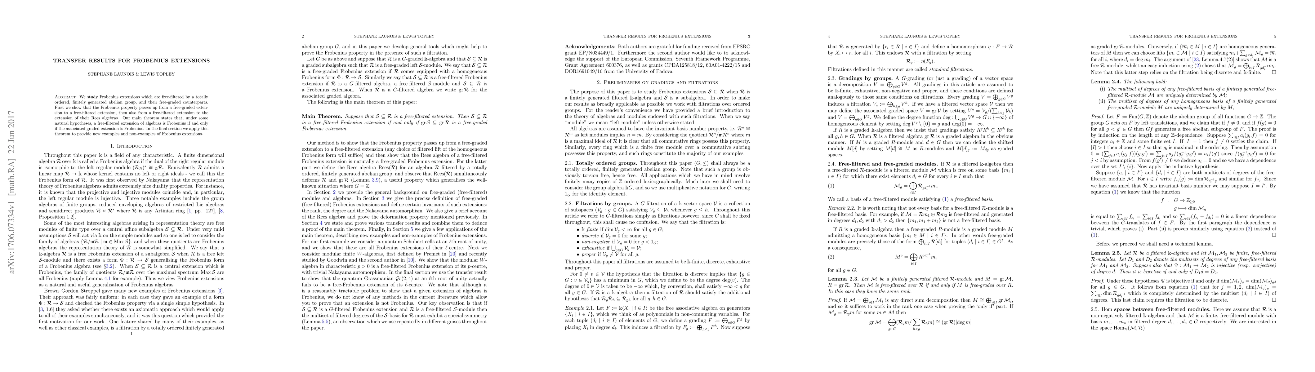 A research paper studies Frobenius extensions of algebras, showing that a free-filtered extension is Frobenius if its associated graded extension is also Frobenius, under certain natural hypotheses.
