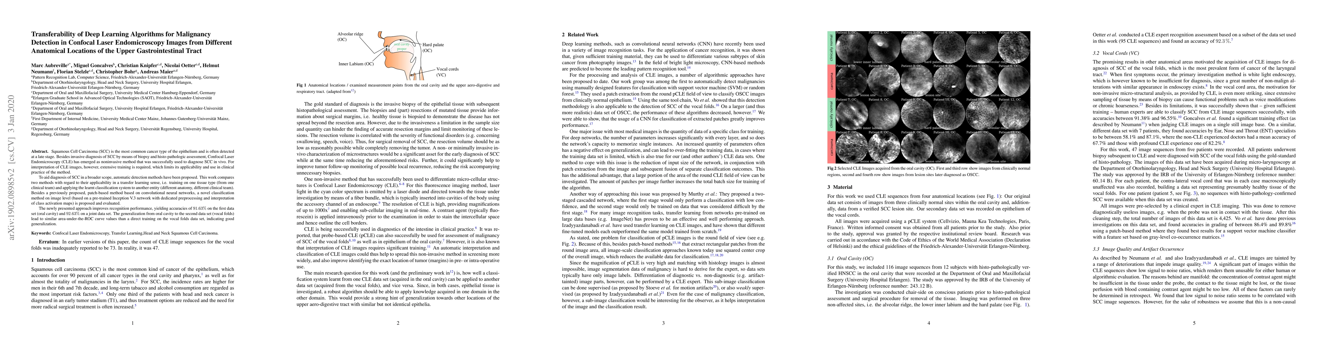 This paper investigates the transferability of deep learning algorithms for detecting Squamous Cell Carcinoma in Confocal Laser Endomicroscopy images across different anatomical locations. A new image-level classification method based on a pre-trained Inception V.3 network shows improved performance and good generalization, achieving high accuracy and comparable ROC-AUC values when applied to different anatomical sites.