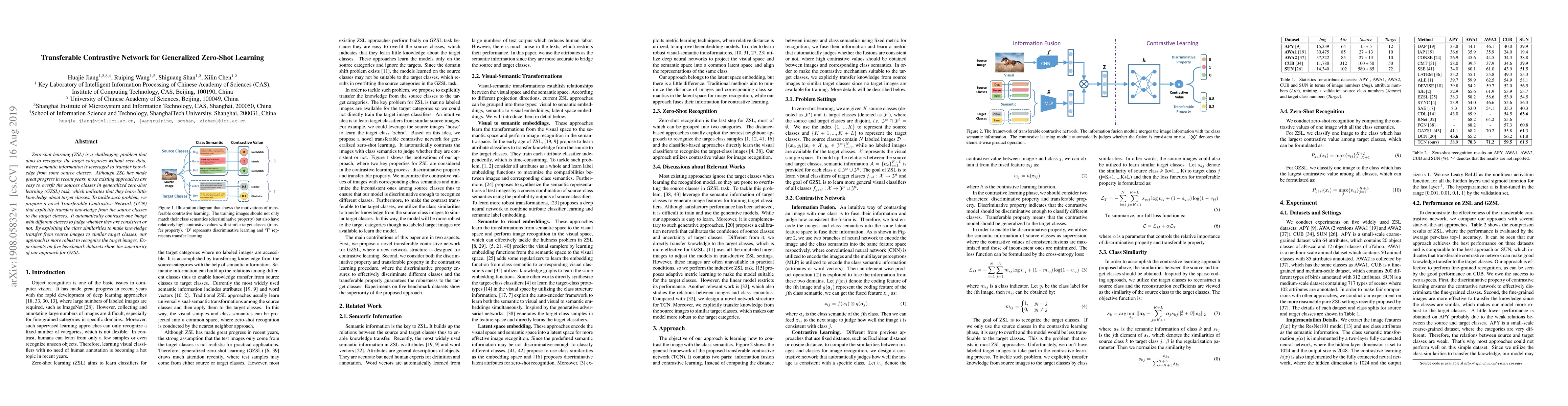 The paper proposes a Transferable Contrastive Network (TCN) for generalized zero-shot learning to address overfitting in source classes. The TCN leverages semantic information and contrasts images with different classes to transfer knowledge effectively, demonstrating superior performance on five benchmark datasets.