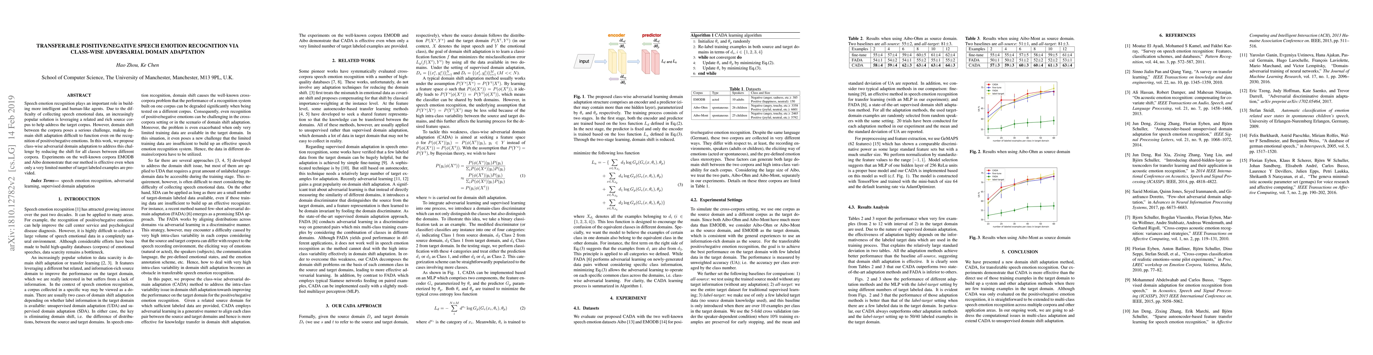 This paper proposes a class-wise adversarial domain adaptation method to tackle the domain shift challenge in speech emotion recognition, enabling effective recognition of positive/negative emotions even with limited labeled target data. Experiments on EMODB and Aibo corpora show the method's effectiveness.