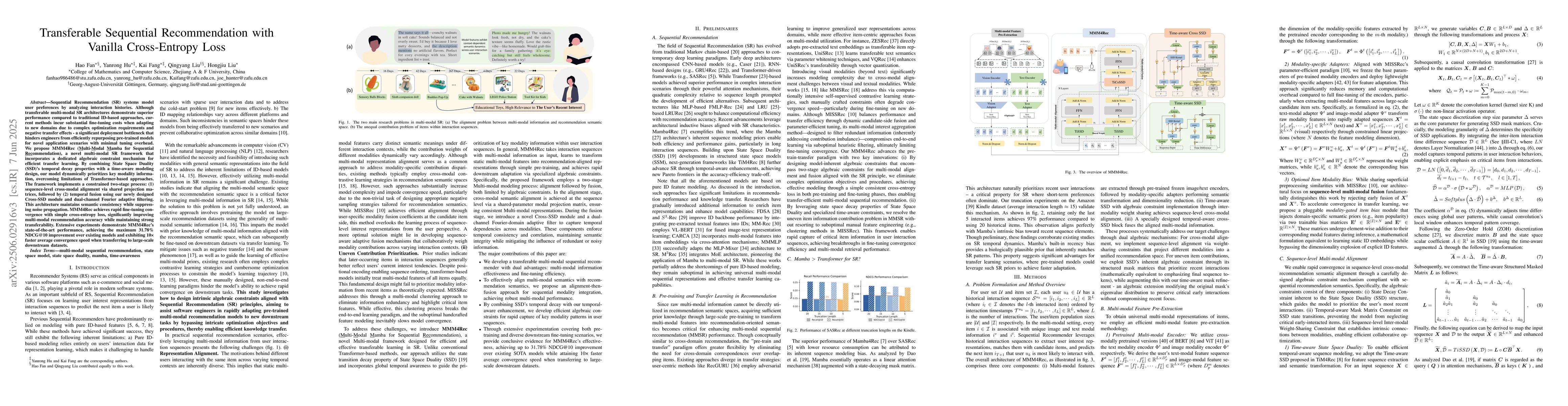 A new model called MMM4Rec is proposed to improve sequential recommendation systems by reducing fine-tuning costs and increasing transferability through a novel multi-modal framework that incorporates algebraic constraints and cross-entropy loss.