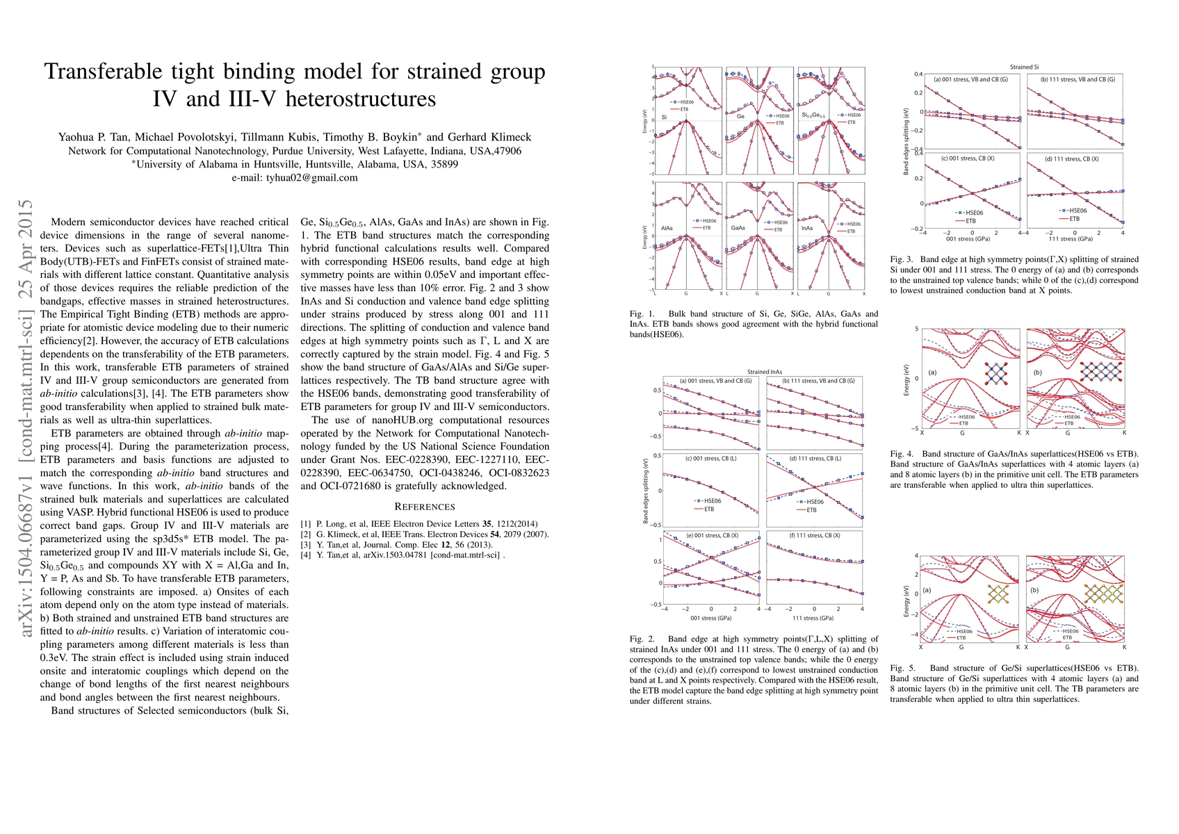 This paper develops transferable empirical tight binding parameters for strained group IV and III-V semiconductors derived from ab-initio calculations, demonstrating their effective application to both bulk materials and ultra-thin superlattices. The parameters exhibit strong transferability across various strained heterostructures.