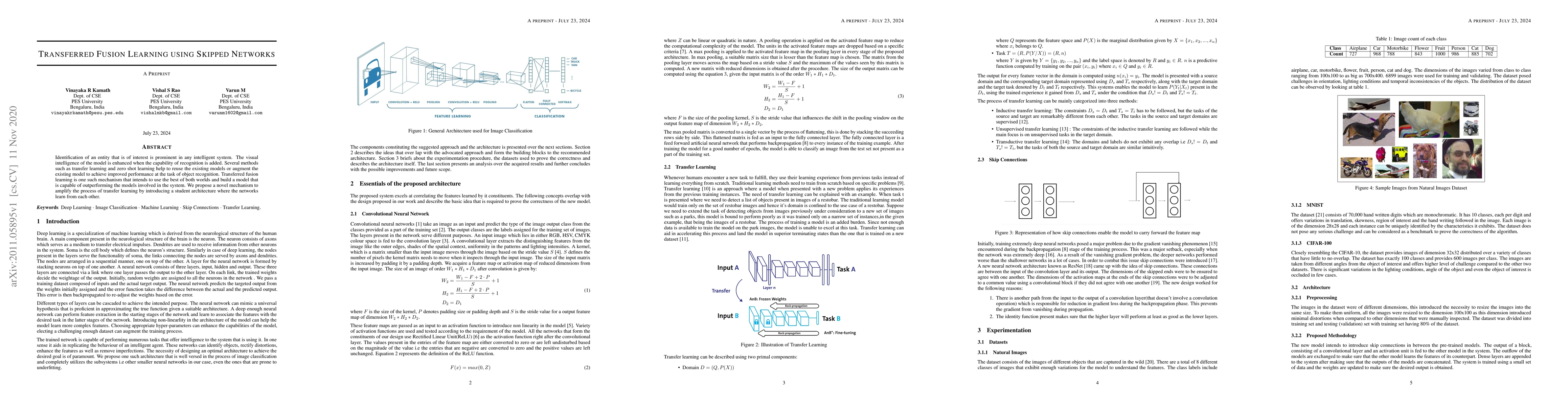 This paper proposes a new method called Transferred Fusion Learning using Skipped Networks to enhance object recognition in intelligent systems by combining the strengths of transfer learning and student architecture. The approach outperforms existing methods and enhances visual intelligence.