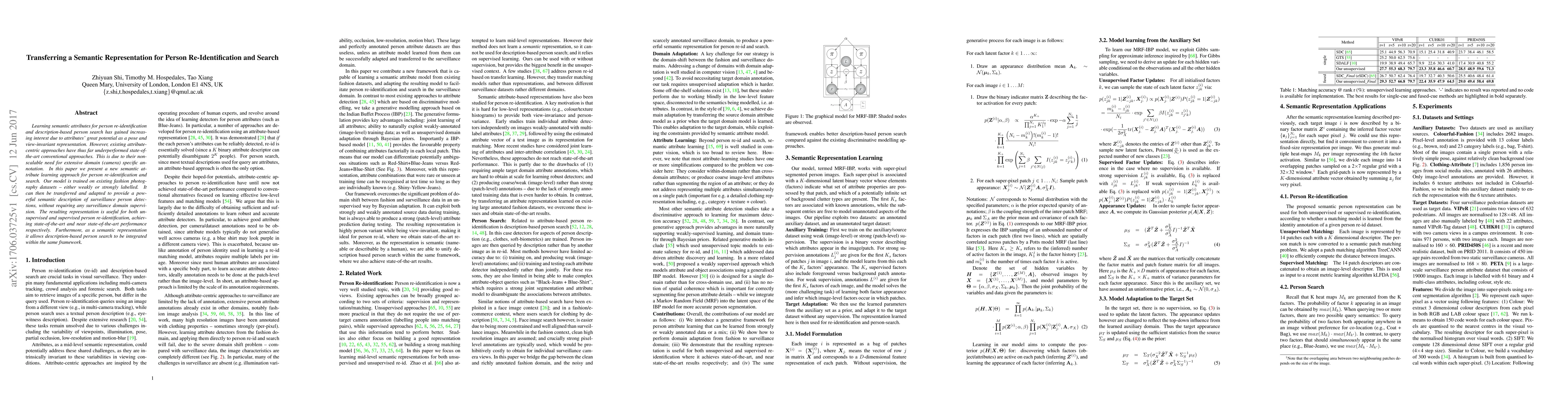The paper presents a new semantic attribute learning approach for person re-identification and search, trained on fashion photography datasets and transferred to surveillance domains without requiring any surveillance-specific annotations.