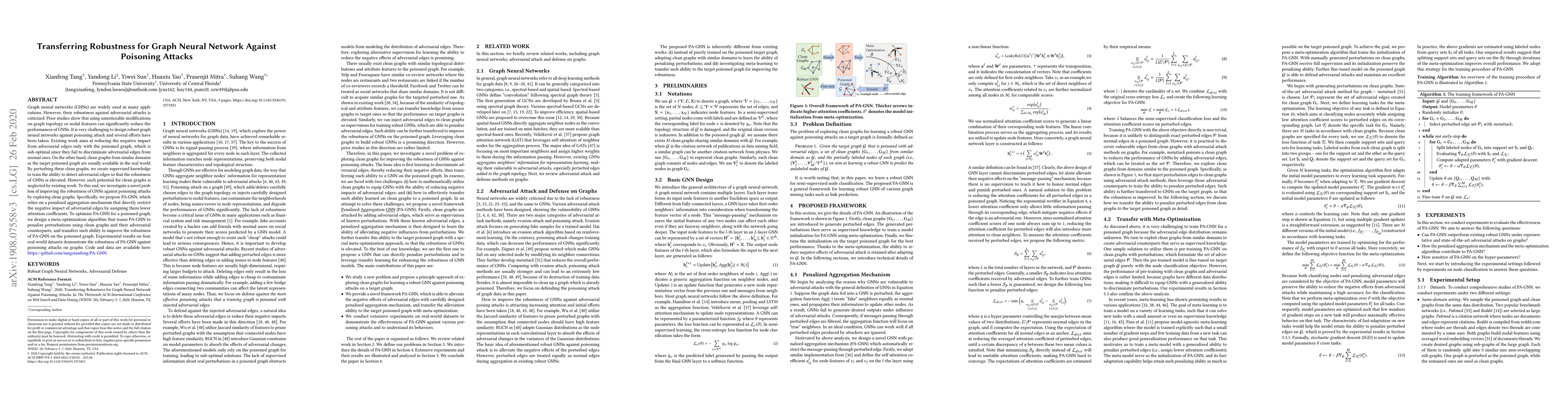 This paper addresses the vulnerability of graph neural networks (GNNs) to poisoning attacks by proposing PA-GNN, which utilizes clean graphs from similar domains to train a penalized aggregation mechanism that assigns lower attention to adversarial edges. A meta-optimization algorithm is developed to transfer this ability to the poisoned graph, significantly improving GNN robustness, as demonstrated on four real-world datasets.
