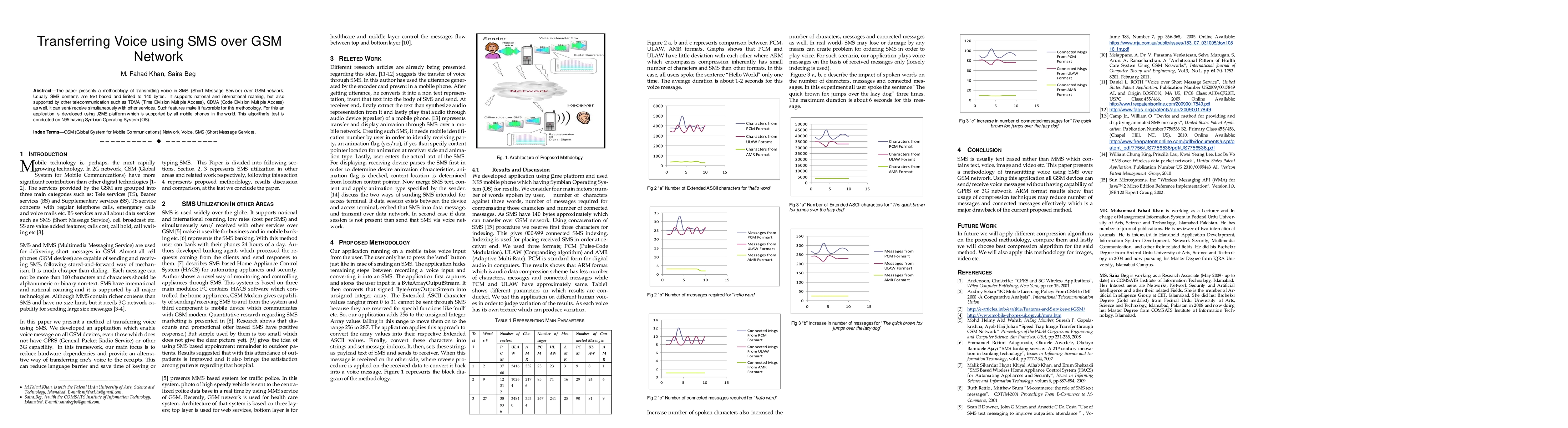 This research paper presents a method to transmit voice over SMS using GSM networks, utilizing J2ME platform development on various mobile phones.