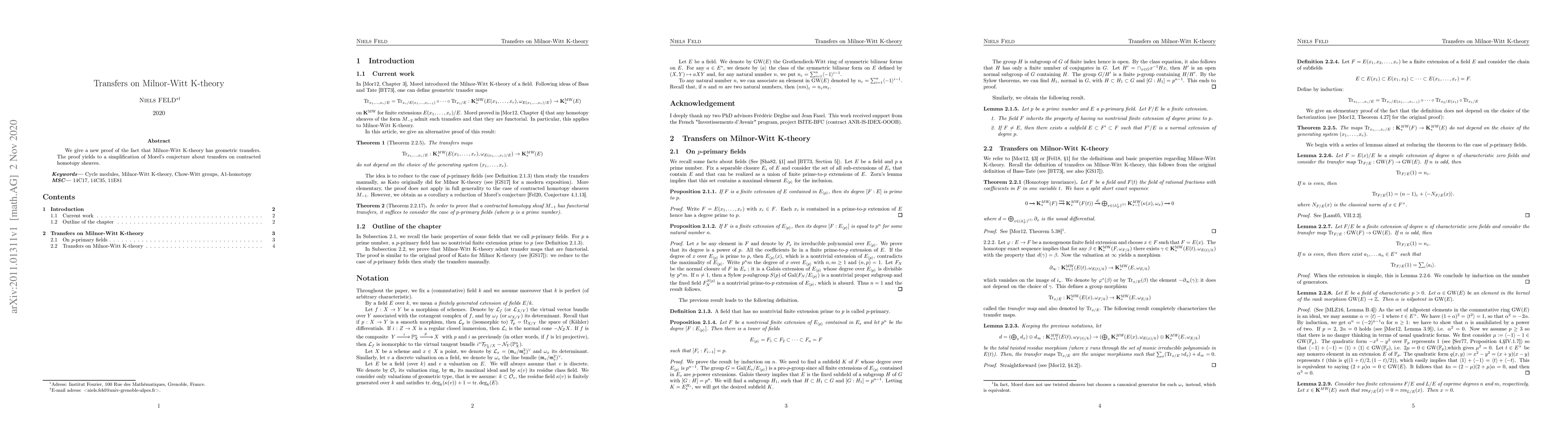 This paper provides a novel proof demonstrating the existence of geometric transfers in Milnor-Witt K-theory, contributing to a simplification of Morel's conjecture regarding transfers on contracted homotopy sheaves.