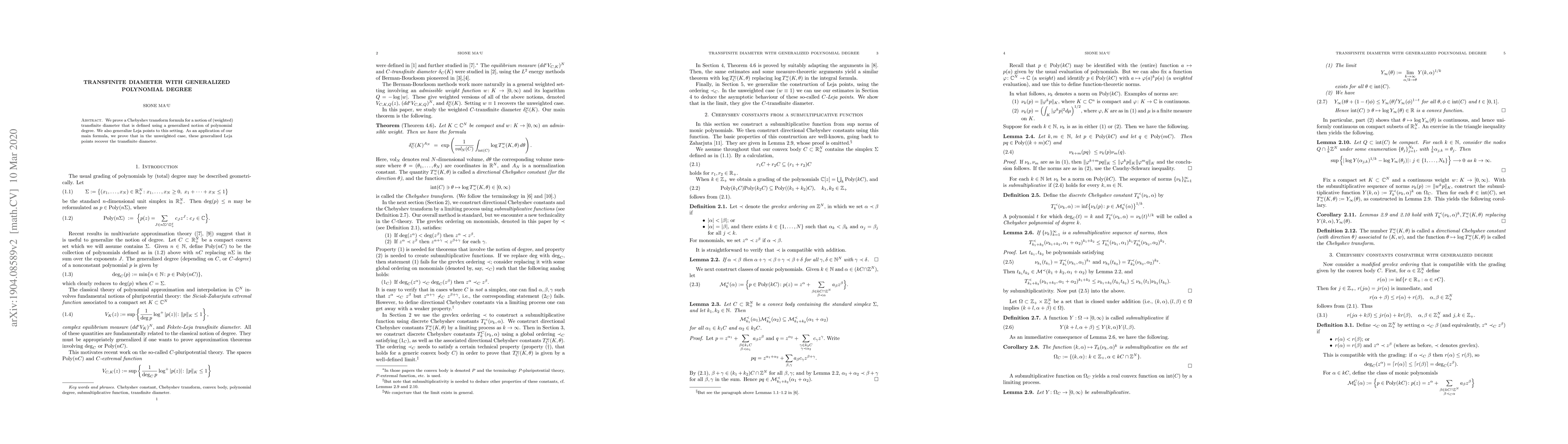 This paper presents a Chebyshev transform formula for a weighted transfinite diameter defined via a generalized polynomial degree and extends Leja points accordingly. It demonstrates that generalized Leja points recover the transfinite diameter in the unweighted scenario.
