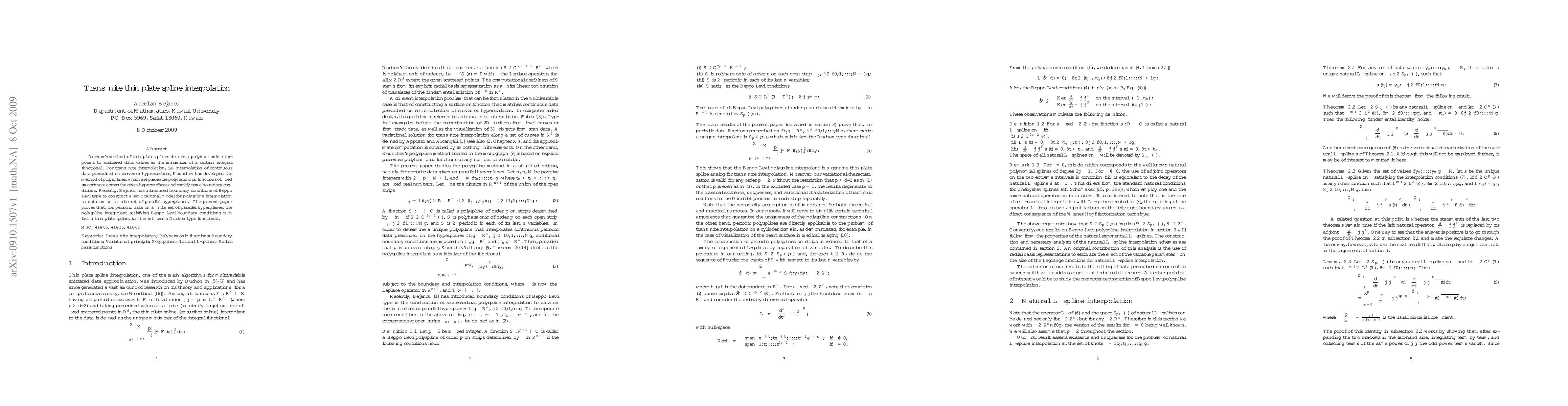 This paper demonstrates that the polyspline interpolant for periodic data on parallel hyperplanes, satisfying Beppo Levi boundary conditions, is equivalent to a thin plate spline, which minimizes a Duchon-type functional. This bridges Duchon's thin plate spline interpolation with Kounchev's polyspline method for transfinite interpolation.