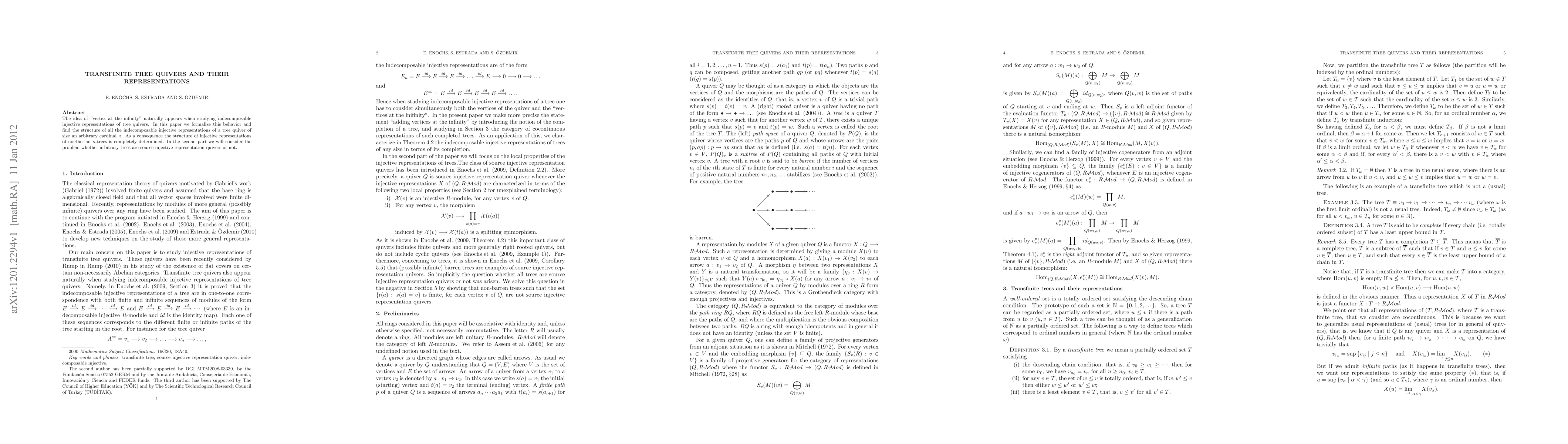 This paper formalizes the concept of "vertex at infinity" in the context of indecomposable injective representations of tree quivers, determining their structure for any cardinal size $\kappa$. It also investigates whether arbitrary trees can serve as source injective representation quivers.