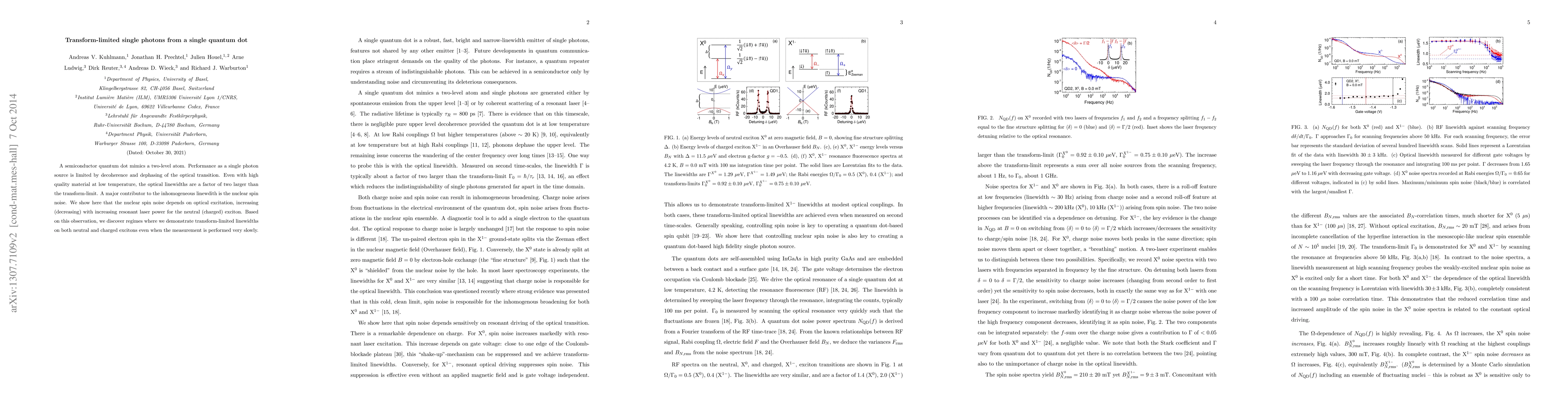 A semiconductor quantum dot mimics a two-level atom. Performance as a single photon source is limited by decoherence and dephasing of the optical transition. Even with high quality material at low temperature, the optical linewidths are a factor of two larger than the transform-limit. A major contributor to the inhomogeneous linewdith is the nuclear spin noise. We show here that the nuclear spin noise depends on optical excitation, increasing (decreasing) with increasing resonant laser power for the neutral (charged) exciton. Based on this observation, we discover regimes where we demonstrate transform-limited linewidths on both neutral and charged excitons even when the measurement is performed very slowly.