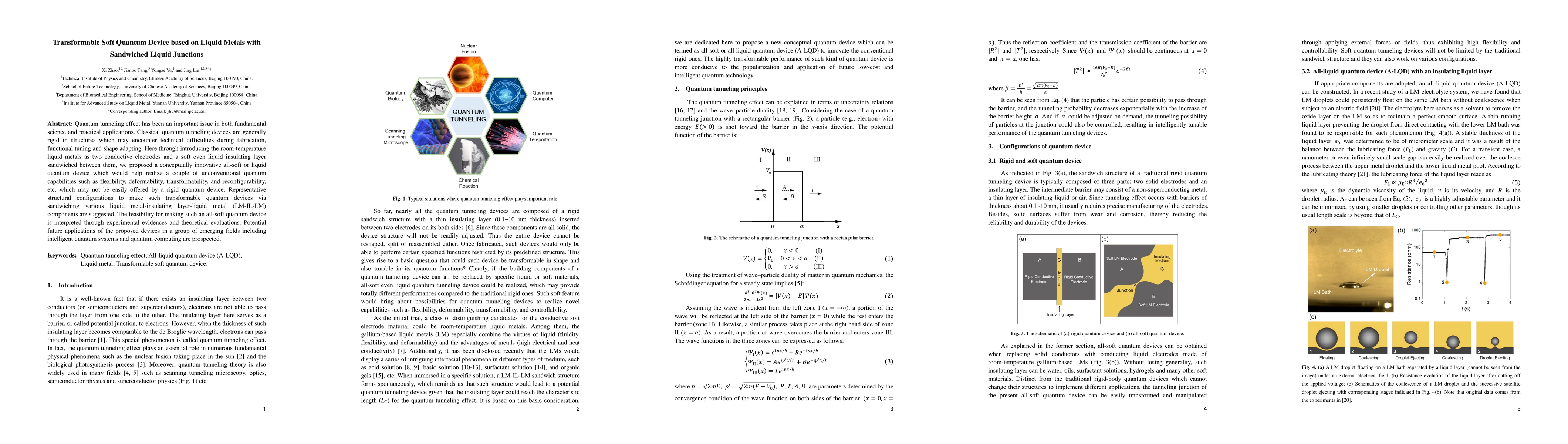 Quantum tunneling effect has been an important issue in both fundamental science and practical applications. Classical quantum tunneling devices are generally rigid in structures which may encounter technical difficulties during fabrication, functional tuning and shape adapting. Here through introducing the room-temperature liquid metals as two conductive electrodes and a soft even liquid insulating layer sandwiched between them, we proposed a conceptually innovative all-soft or liquid quantum device which would help realize a couple of unconventional quantum capabilities such as flexibility, deformability, transformability, and reconfigurability, etc. which may not be easily offered by a rigid quantum device. Representative structural configurations to make such transformable quantum devices via sandwiching various liquid metal-insulating layer-liquid metal (LM-IL-LM) components are suggested. The feasibility for making such an all-soft quantum device is interpreted through experimental evidences and theoretical evaluations. Potential future applications of the proposed devices in a group of emerging fields including intelligent quantum systems and quantum computing are prospected.
