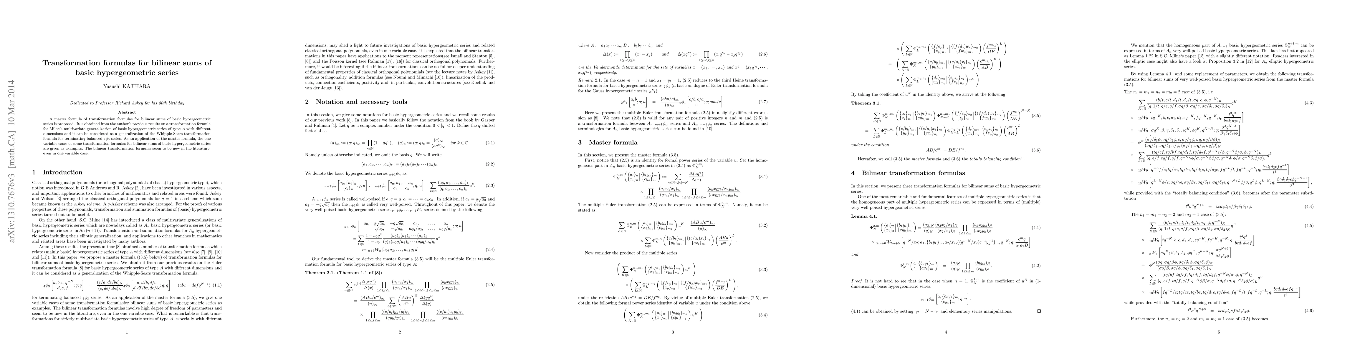 This paper proposes a master formula for transformation of bilinear sums of basic hypergeometric series, extending previous results on Milne's multivariate generalization. It also provides new one-variable cases of transformation formulas for these sums, which appear to be novel in the literature.