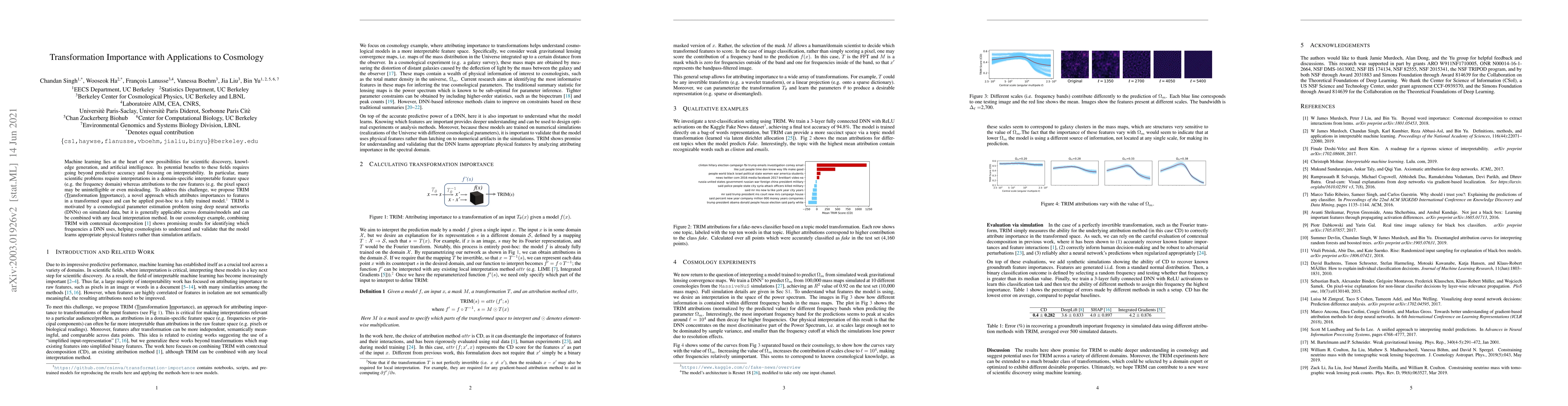 Machine learning lies at the heart of new possibilities for scientific discovery, knowledge generation, and artificial intelligence. Its potential benefits to these fields requires going beyond predictive accuracy and focusing on interpretability. In particular, many scientific problems require interpretations in a domain-specific interpretable feature space (e.g. the frequency domain) whereas attributions to the raw features (e.g. the pixel space) may be unintelligible or even misleading. To address this challenge, we propose TRIM (TRansformation IMportance), a novel approach which attributes importances to features in a transformed space and can be applied post-hoc to a fully trained model. TRIM is motivated by a cosmological parameter estimation problem using deep neural networks (DNNs) on simulated data, but it is generally applicable across domains/models and can be combined with any local interpretation method. In our cosmology example, combining TRIM with contextual decomposition shows promising results for identifying which frequencies a DNN uses, helping cosmologists to understand and validate that the model learns appropriate physical features rather than simulation artifacts.