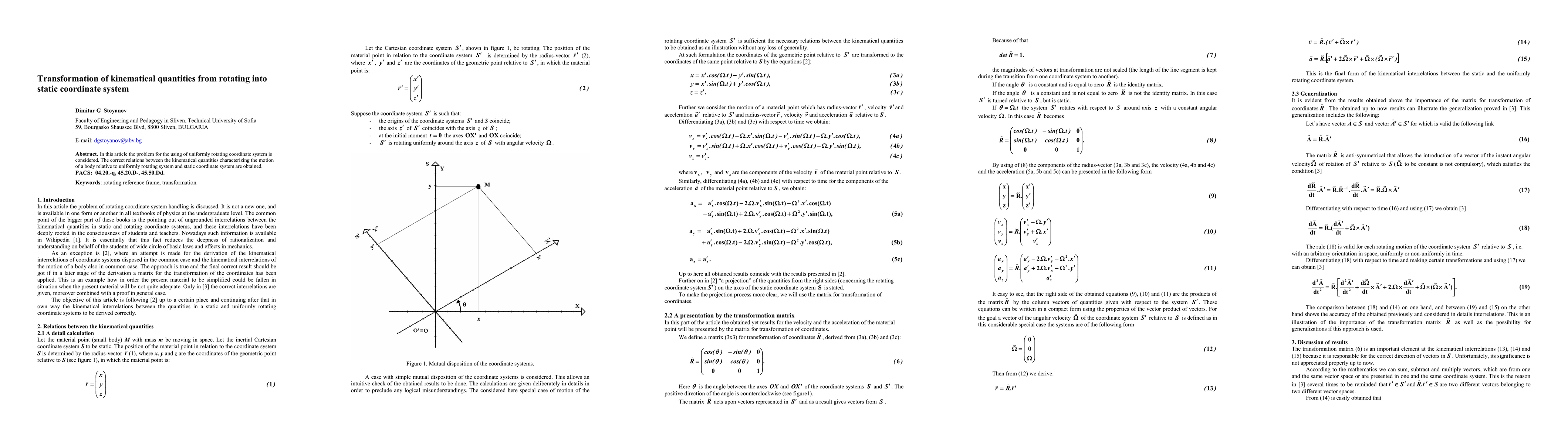 Summary: This paper addresses the transformation of kinematical quantities from a uniformly rotating to a static coordinate system, deriving the correct relations that describe the motion of a body in both reference frames.