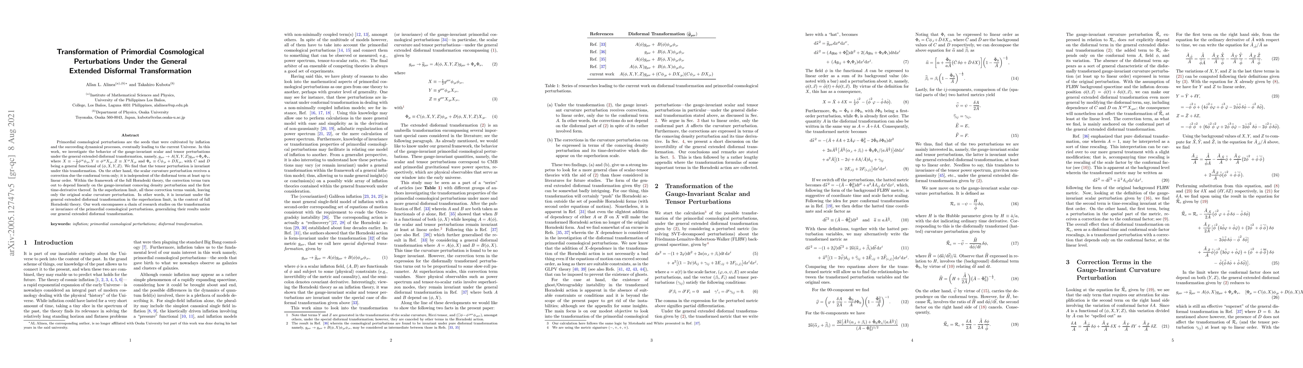 This paper investigates the transformation of primordial cosmological perturbations under a general extended disformal transformation, finding that tensor perturbations remain invariant while scalar perturbations receive corrections dependent on the conformal term. In the superhorizon limit, scalar perturbations are invariant, generalizing previous results.