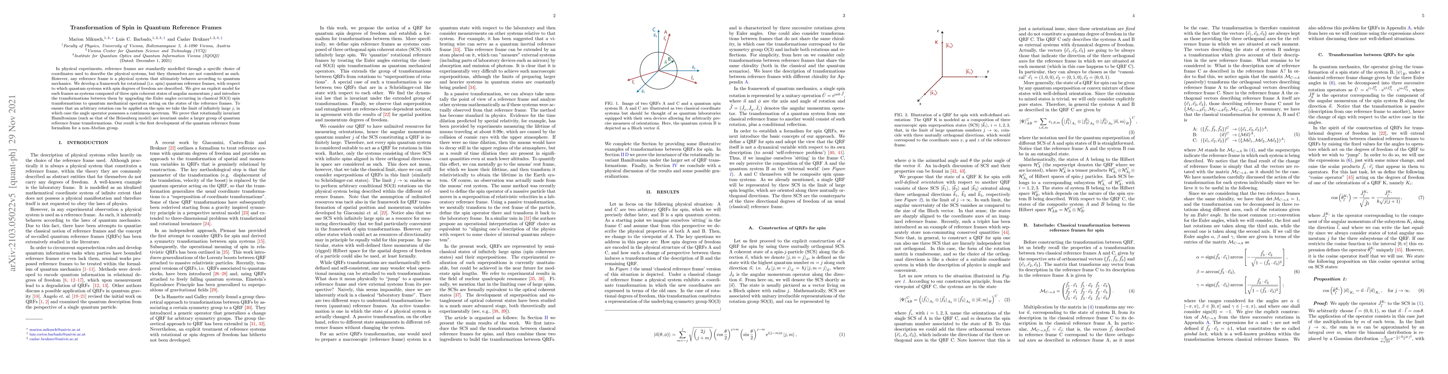 This paper develops a framework for quantum reference frames based on spin coherent states, transforming spin through quantum mechanical operators. It shows that rotationally invariant Hamiltonians remain invariant under these transformations, marking the first application of the quantum reference frame formalism to a non-Abelian group.
