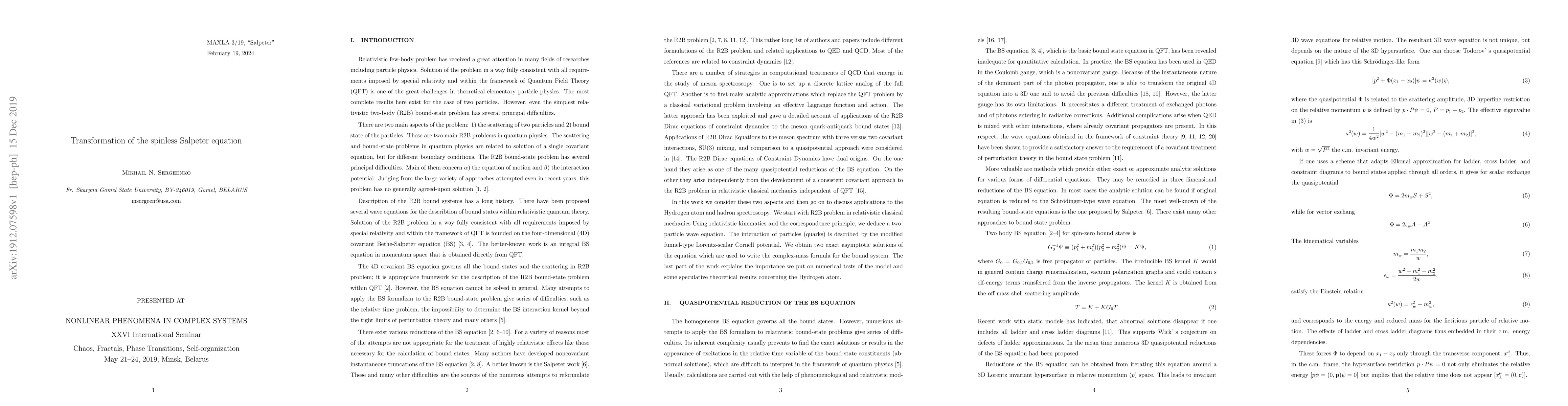 Researchers derived a wave equation for bound particles using the spinless Salpeter equation, obtaining complex eigenmasses that differ from NIST data for the hydrogen atom's energy levels.
