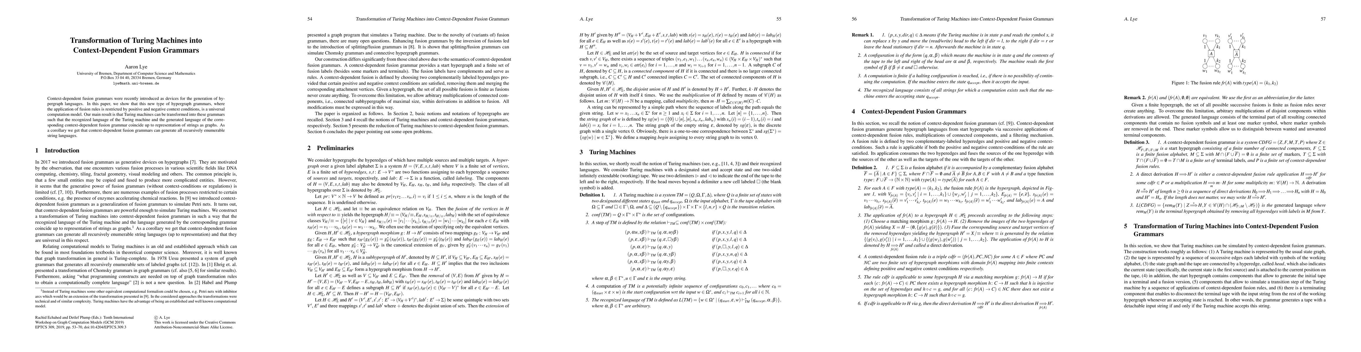 Researchers show that context-dependent fusion grammars, a new type of hypergraph grammar, can generate all recursively enumerable string languages, making them a universal computation model. Turing machines can be transformed into these grammars with equivalent language recognition capabilities.