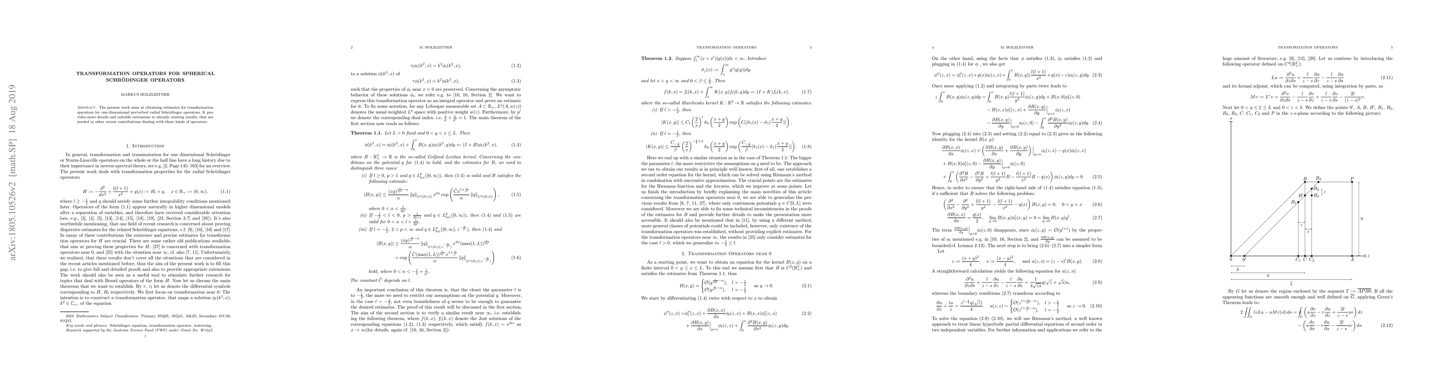 This paper explores transformation operators for one-dimensional radial Schr"odinger operators, providing new insights and extensions to existing results.