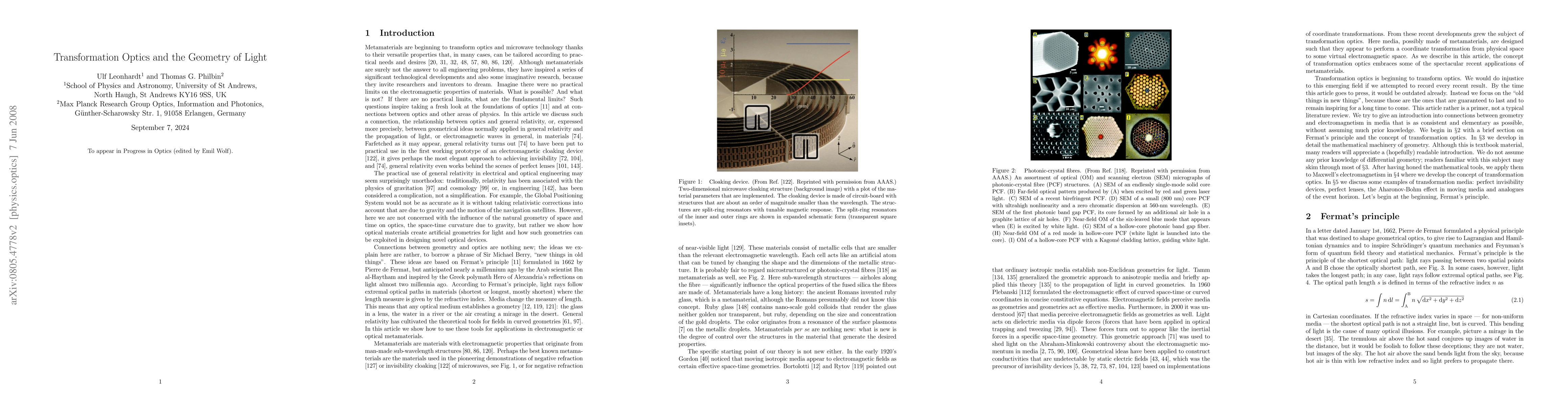 Metamaterials are beginning to transform optics and microwave technology thanks to their versatile properties that, in many cases, can be tailored according to practical needs and desires. Although metamaterials are surely not the answer to all engineering problems, they have inspired a series of significant technological developments and also some imaginative research, because they invite researchers and inventors to dream. Imagine there were no practical limits on the electromagnetic properties of materials. What is possible? And what is not? If there are no practical limits, what are the fundamental limits? Such questions inspire taking a fresh look at the foundations of optics and at connections between optics and other areas of physics. In this article we discuss such a connection, the relationship between optics and general relativity, or, expressed more precisely, between geometrical ideas normally applied in general relativity and the propagation of light, or electromagnetic waves in general, in materials. We also discuss how this connection is applied: in invisibility devices, perfect lenses, the optical Aharonov-Bohm effect of vortices and in analogues of the event horizon.