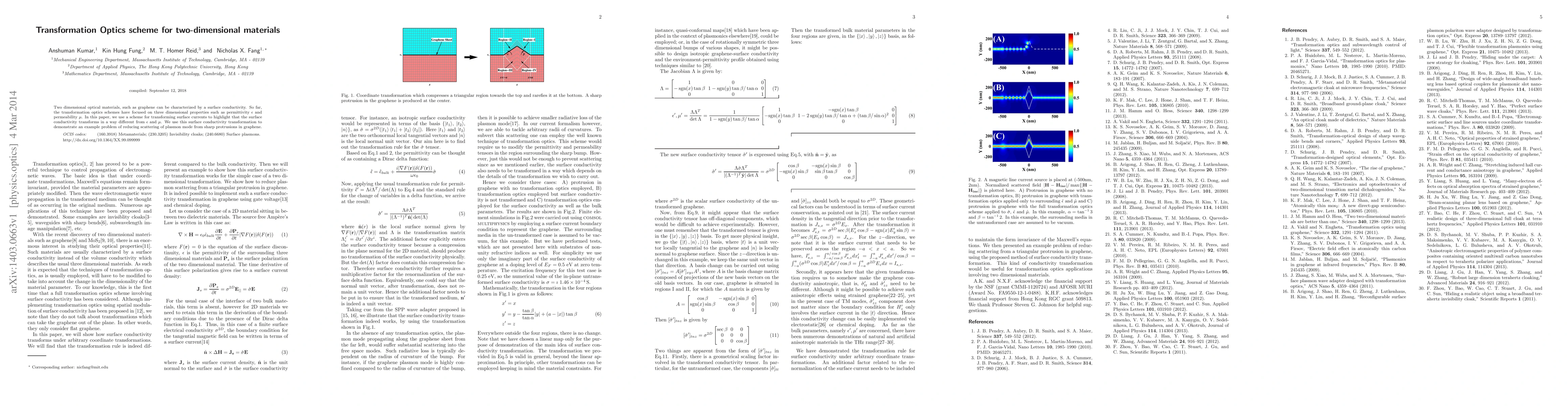 This paper proposes a transformation optics scheme tailored for two-dimensional materials like graphene, focusing on surface conductivity transformations rather than traditional three-dimensional permittivity and permeability. It demonstrates how surface conductivity alters scattering of plasmon modes from sharp protrusions in graphene.