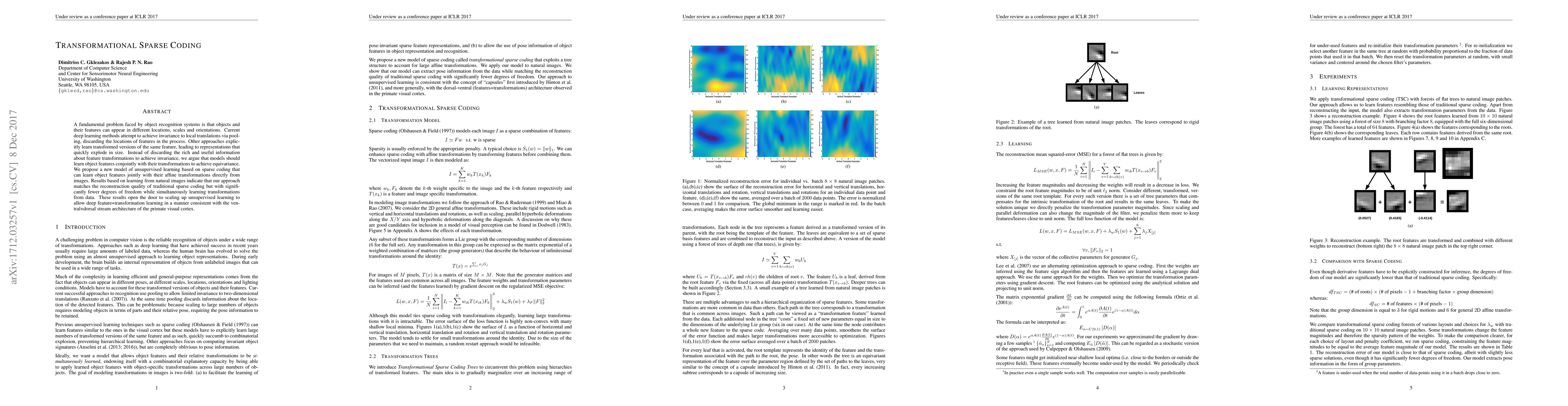 A fundamental problem faced by object recognition systems is that objects and their features can appear in different locations, scales and orientations. Current deep learning methods attempt to achieve invariance to local translations via pooling, discarding the locations of features in the process. Other approaches explicitly learn transformed versions of the same feature, leading to representations that quickly explode in size. Instead of discarding the rich and useful information about feature transformations to achieve invariance, we argue that models should learn object features conjointly with their transformations to achieve equivariance. We propose a new model of unsupervised learning based on sparse coding that can learn object features jointly with their affine transformations directly from images. Results based on learning from natural images indicate that our approach matches the reconstruction quality of traditional sparse coding but with significantly fewer degrees of freedom while simultaneously learning transformations from data. These results open the door to scaling up unsupervised learning to allow deep feature+transformation learning in a manner consistent with the ventral+dorsal stream architecture of the primate visual cortex.