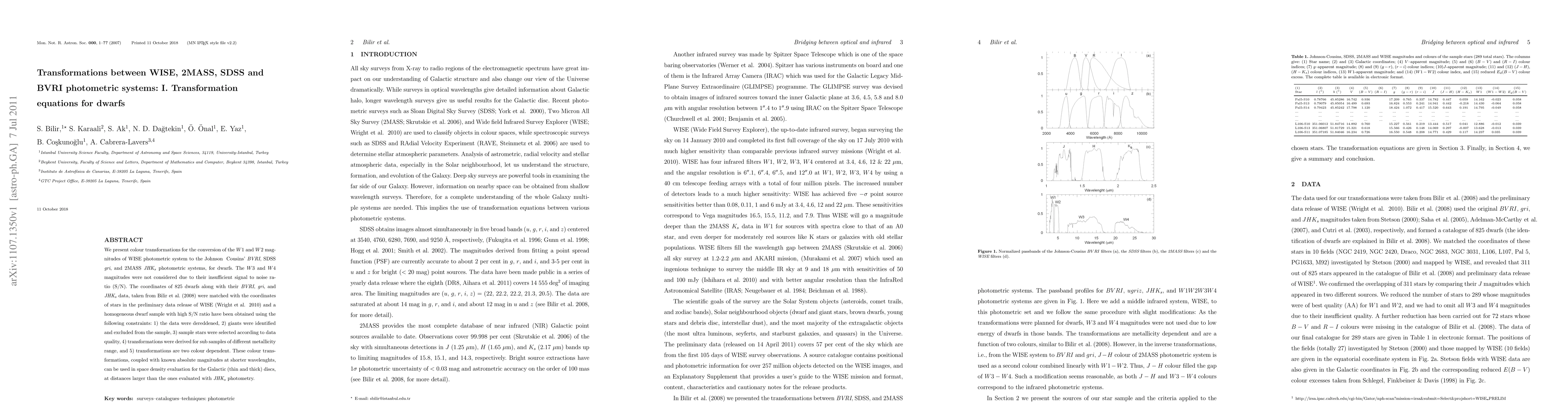 This paper provides colour transformation equations for converting WISE W1 and W2 magnitudes to BVRI, SDSS gri, and 2MASS JHK_s photometric systems for a sample of 825 dwarfs, excluding W3 and W4 due to low signal-to-noise ratios. The transformations are derived under strict data quality and metallicity constraints.