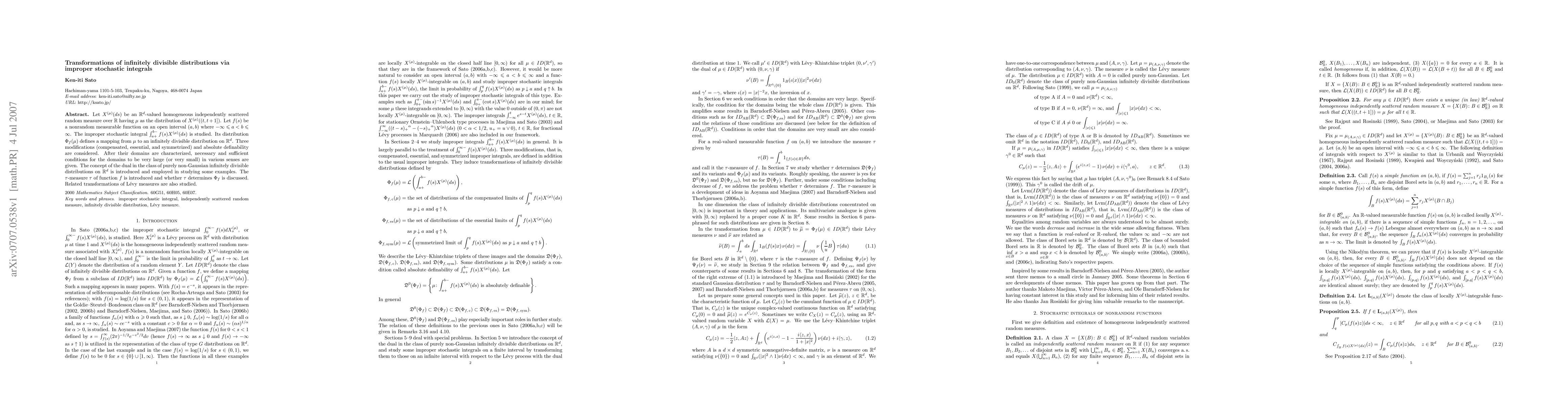 This research paper explores transformations of infinitely divisible distributions using improper stochastic integrals, focusing on conditions for large or small domains and the role of function parameters in determining distribution mappings.