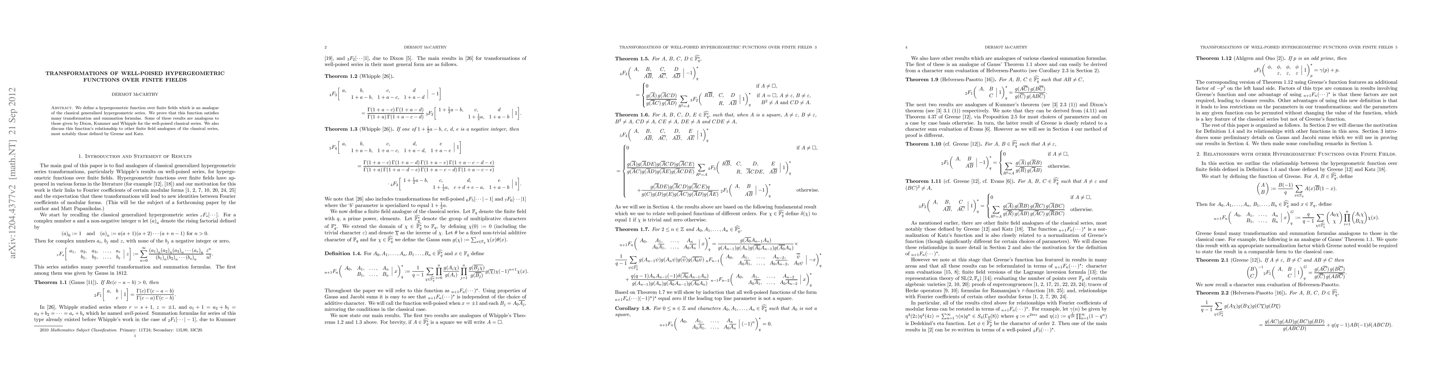 Researchers defined a hypergeometric function over finite fields that satisfies transformation and summation formulas, building on classical series results. This work expands understanding of these functions and their relationships to other finite field analogues.