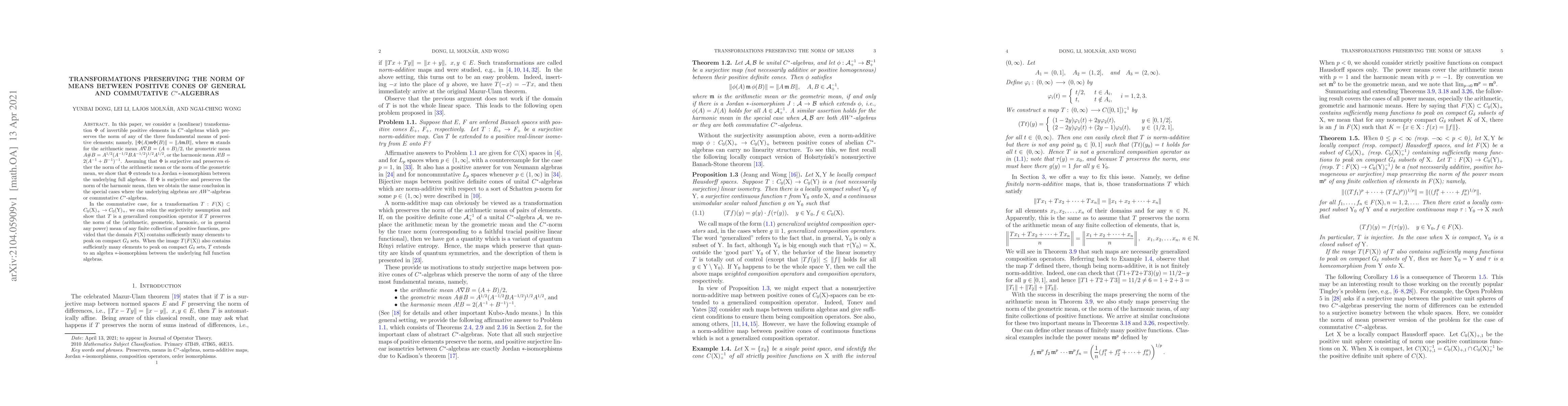 In this paper, we consider a (nonlinear) transformation $\Phi$ of invertible positive elements in $C^*$-algebras which preserves the norm of any of the three fundamental means of positive elements; namely, $\|\Phi(A)\mm \Phi(B)\| = \|A\mm B\|$, where $\mm$ stands for the arithmetic mean $A\nabla B=(A+B)/2$, the geometric mean $A\#B=A^{1/2}(A^{-1/2}BA^{-1/2})^{1/2}A^{1/2}$, or the harmonic mean $A!B=2(A^{-1} + B^{-1})^{-1}$. Assuming that $\Phi$ is surjective and preserves either the norm of the arithmetic mean or the norm of the geometric mean, we show that $\Phi$ extends to a Jordan $*$-isomorphism between the underlying full algebras. If $\Phi$ is surjective and preserves the norm of the harmonic mean, then we obtain the same conclusion in the special cases where the underlying algebras are $AW^*$-algebras or commutative $C^*$-algebras. In the commutative case, for a transformation $T: F(\mathrm{X})\subset C_0(\mathrm{X})_+\rightarrow C_0(\mathrm{Y})_+$, we can relax the surjectivity assumption and show that $T$ is a generalized composition operator if $T$ preserves the norm of the (arithmetic, geometric, harmonic, or in general any power) mean of any finite collection of positive functions, provided that the domain $F(\mathrm{X})$ contains sufficiently many elements to peak on compact $G_\delta$ sets. When the image $T(F(\mathrm{X}))$ also contains sufficiently many elements to peak on compact $G_\delta$ sets, $T$ extends to an algebra $*$-isomorphism between the underlying full function algebras.