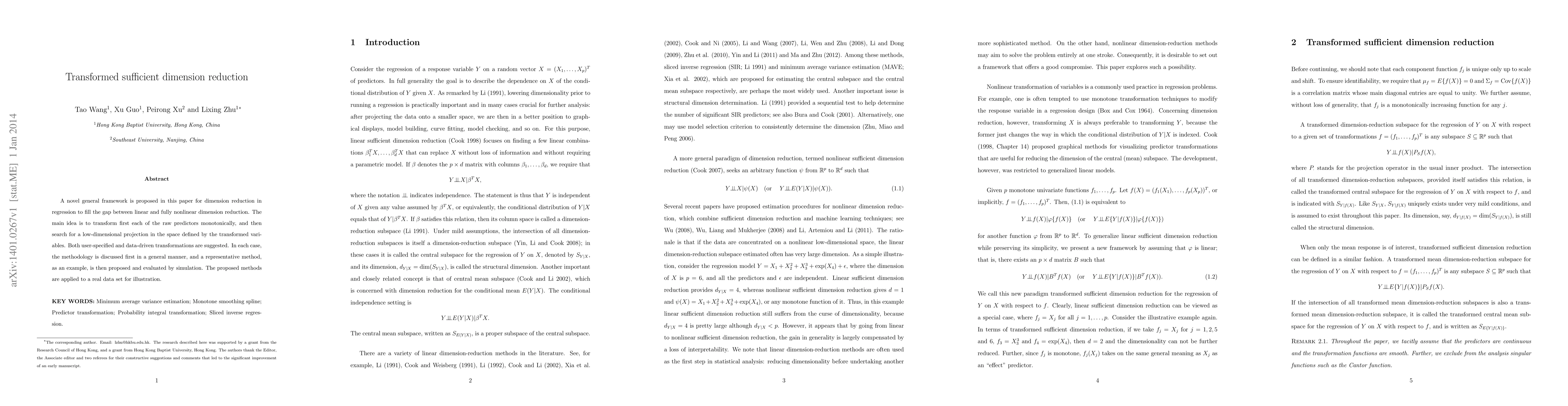 This paper proposes a new framework for dimension reduction in regression that transforms raw predictors before finding low-dimensional projections. The method can use user-specified or data-driven transformations to improve performance on real datasets.