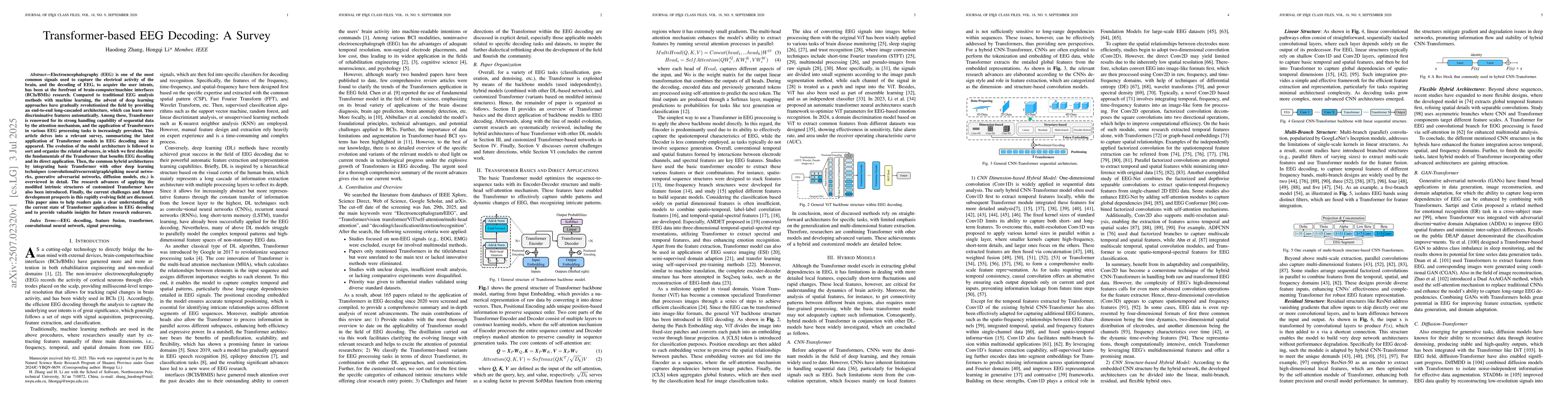 Electroencephalography (EEG) is one of the most common signals used to capture the electrical activity of the brain, and the decoding of EEG, to acquire the user intents, has been at the forefront of brain-computer/machine interfaces (BCIs/BMIs) research. Compared to traditional EEG analysis methods with machine learning, the advent of deep learning approaches have gradually revolutionized the field by providing an end-to-end long-cascaded architecture, which can learn more discriminative features automatically. Among these, Transformer is renowned for its strong handling capability of sequential data by the attention mechanism, and the application of Transformers in various EEG processing tasks is increasingly prevalent. This article delves into a relevant survey, summarizing the latest application of Transformer models in EEG decoding since it appeared. The evolution of the model architecture is followed to sort and organize the related advances, in which we first elucidate the fundamentals of the Transformer that benefits EEG decoding and its direct application. Then, the common hybrid architectures by integrating basic Transformer with other deep learning techniques (convolutional/recurrent/graph/spiking neural netwo-rks, generative adversarial networks, diffusion models, etc.) is overviewed in detail. The research advances of applying the modified intrinsic structures of customized Transformer have also been introduced. Finally, the current challenges and future development prospects in this rapidly evolving field are discussed. This paper aims to help readers gain a clear understanding of the current state of Transformer applications in EEG decoding and to provide valuable insights for future research endeavors.